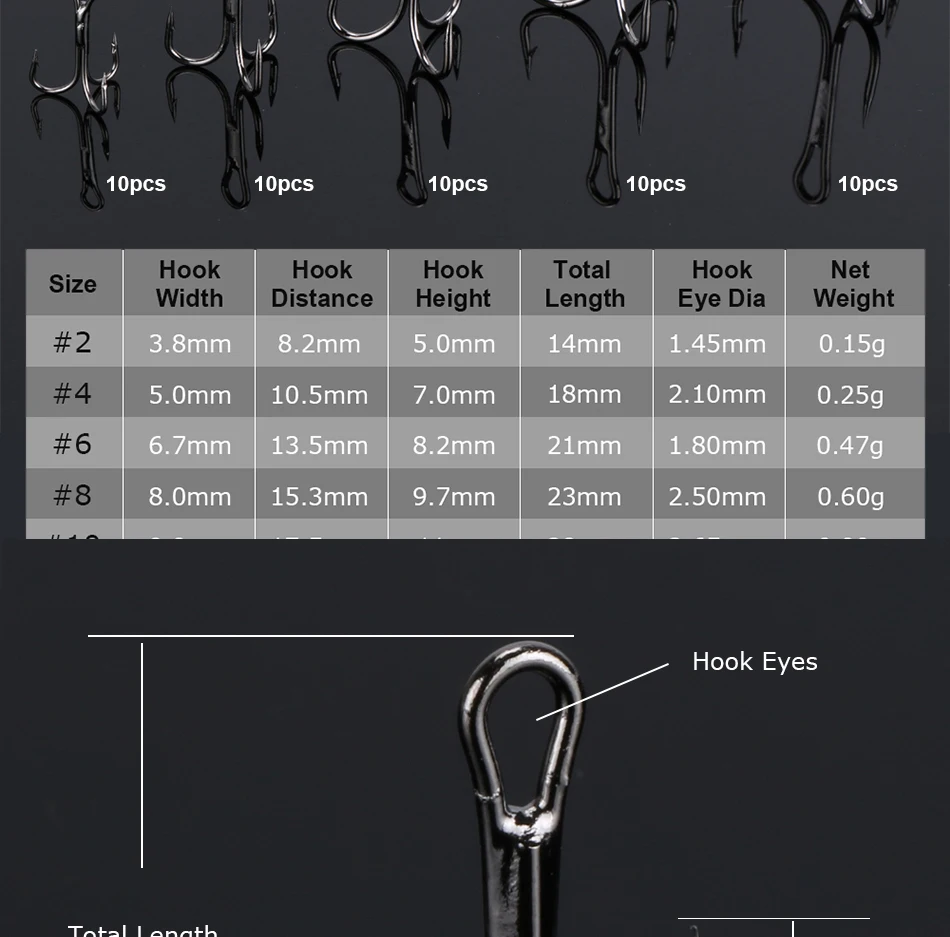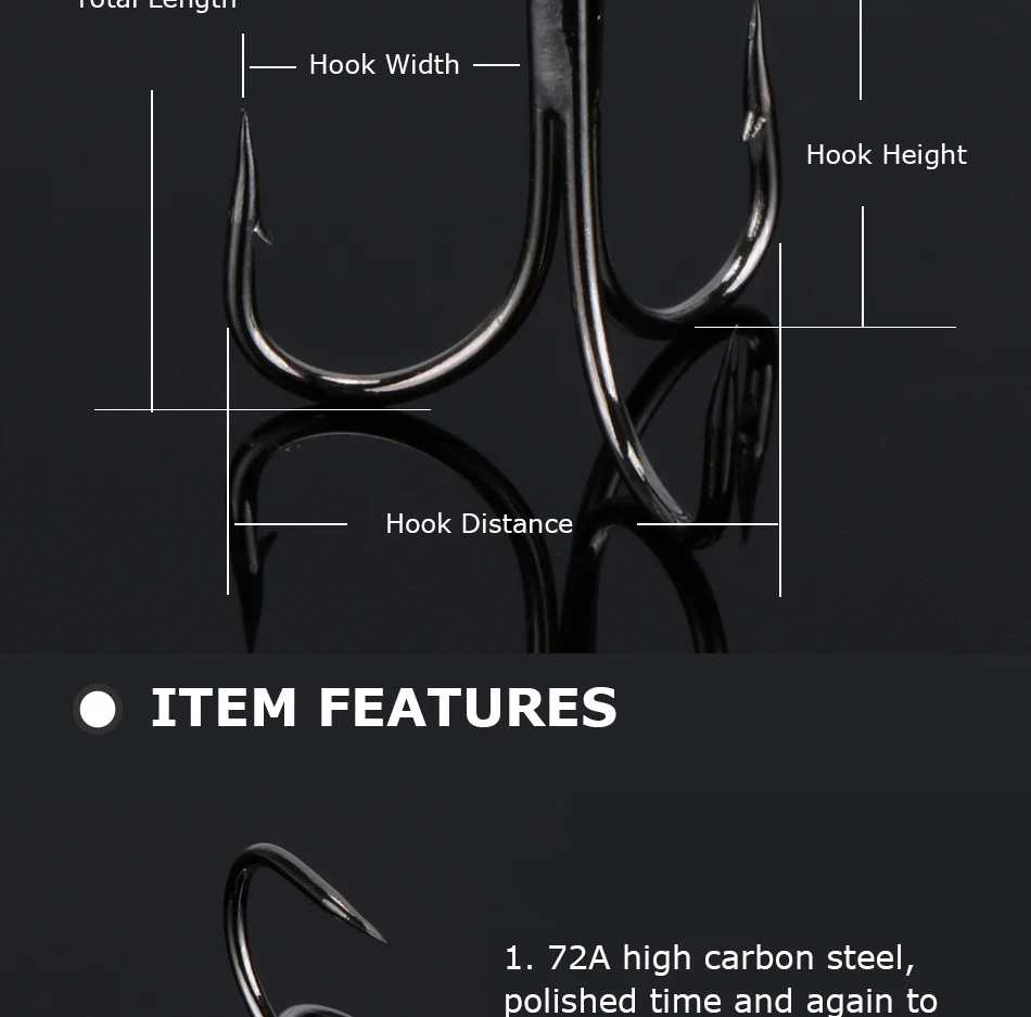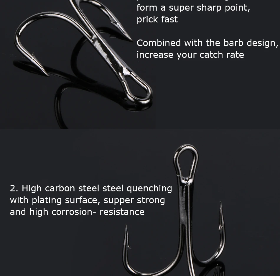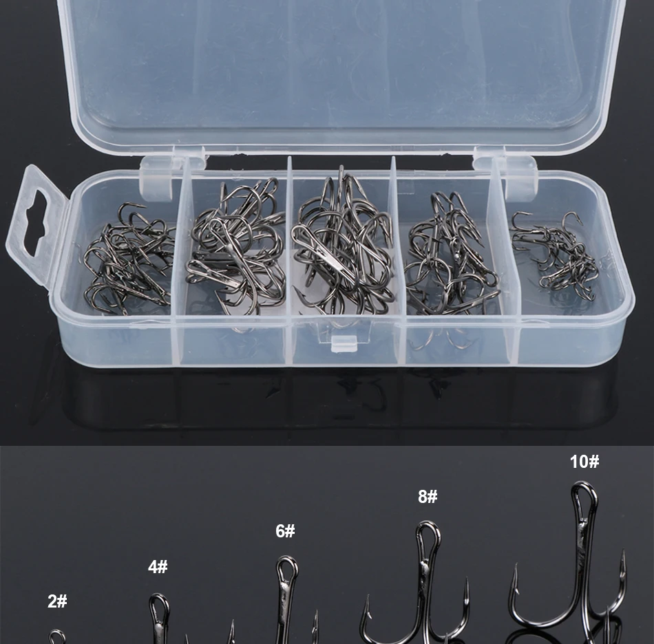 Tamaño del juego de anzuelos de pesca triples Goture# 2/4/6/8/10 Acero Alto Carbono Plata Negro Marrón para Anzuelos de Pesca de Carpa Japón 50 unids/caja