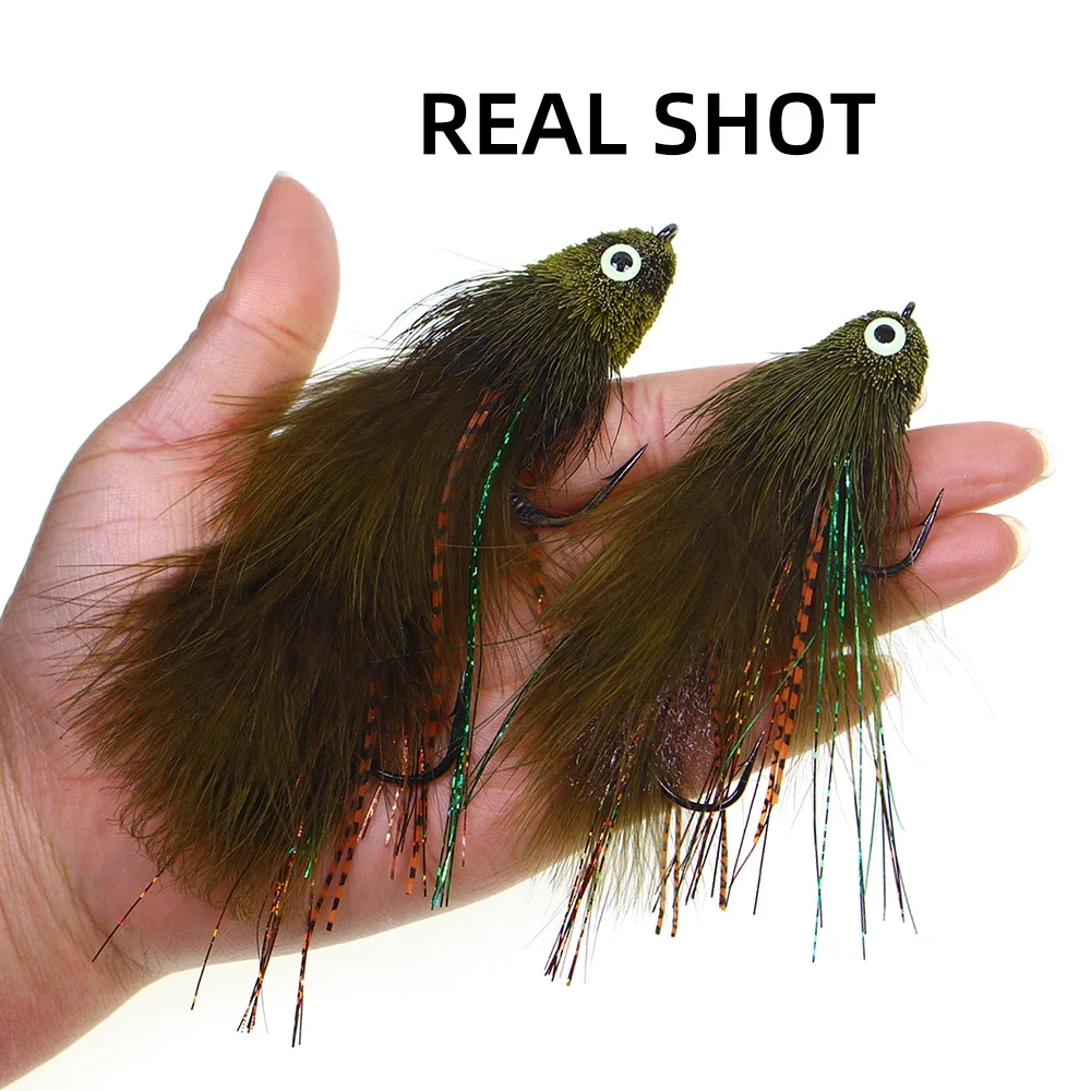 Tamaño S L pelo de ciervo juego grande serpentina articulada mosca fuerte anzuelos Aberdeen trucha grande lubina agua salada señuelo de pesca con mosca