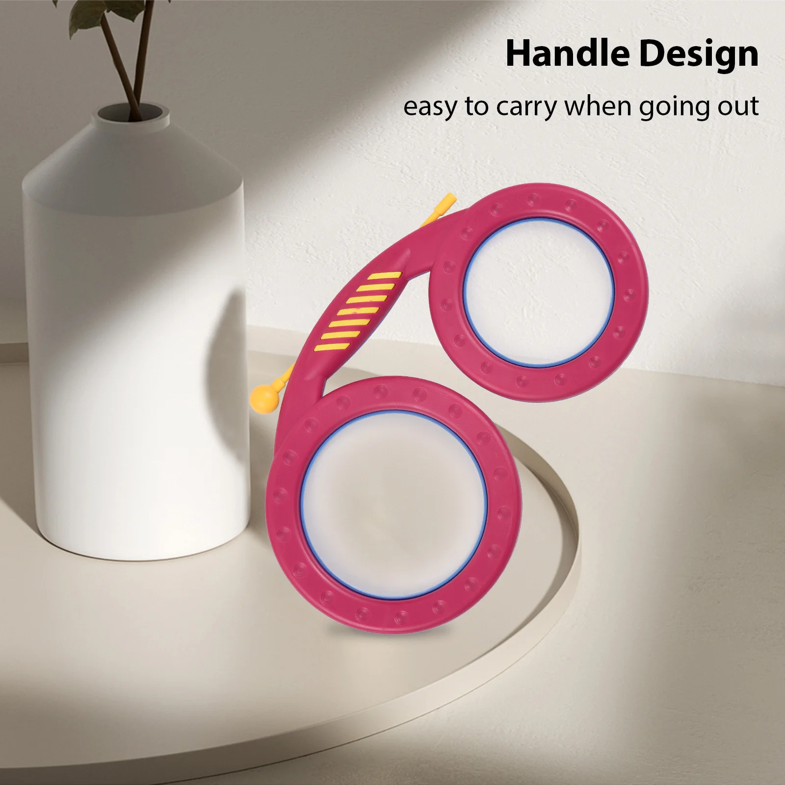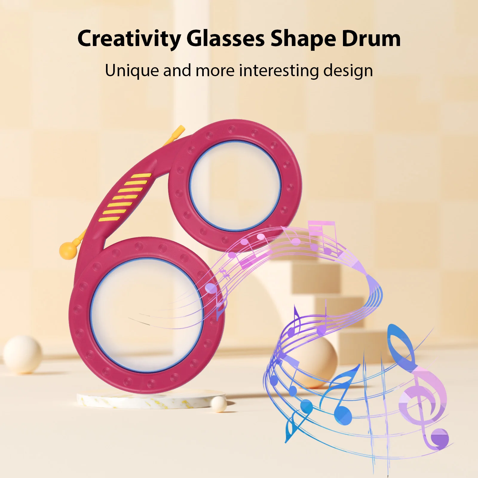 【Diseño exquisito】: El tambor está diseñado en forma de gafas, lo que agrega un toque de creatividad y novedad a su colección de instrumentos de percusión.