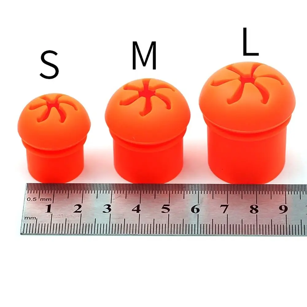 Brand new and high quality Material: Silicone Color: (As Pictures Show) Weight: about 10g Size: Approx. (As Pictures Show) - S: Inner diameter 18mm, height 29mm, suitable for fishing rod diameter 18-22mm - M: Inner diameter 22mm, height 31mm, suitable for fishing rod diameter 22-27mm - L: Inner diameter 26mm, height 38mm, suitable for fishing rod diameter 26-30mm Features: - Made of high quality material, durable and functional - A variety of colors and sizes are available to meet different needs - Soft silicone material, comfortable to touch, not hurt the fishing rod - Easy to install, strong elasticity, not easy to fall off -Bottom with drainage holes, breathable Notice: 1. The real color of the item may be slightly different from the pictures shown on the website caused by many factors such as brightness of your monitor and light brightness. 2. Please allow slight manual measurement deviation for the data. Thank for your understanding. 3. 1cm=0.39''. Package Included: 1x Fishing Rod End Cap