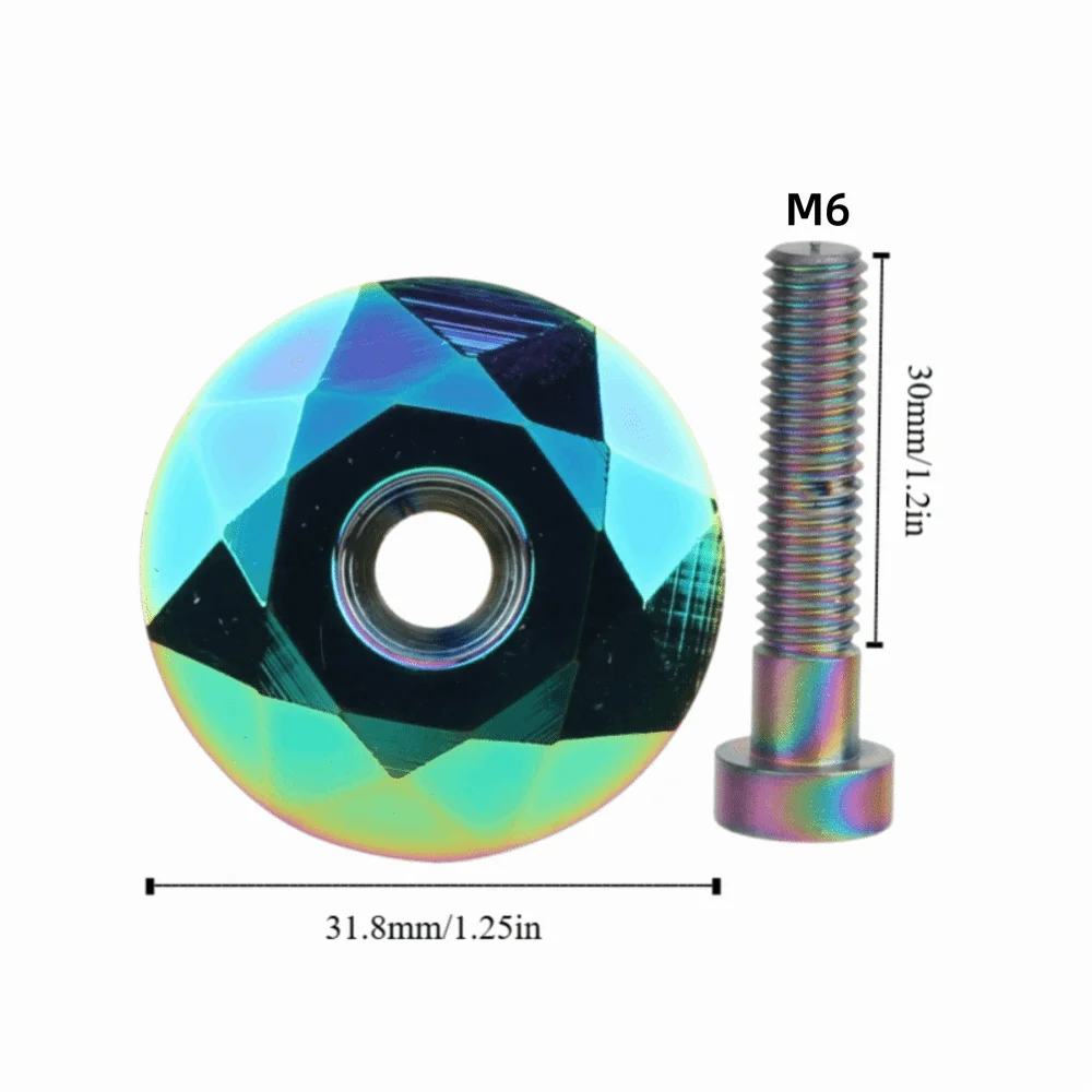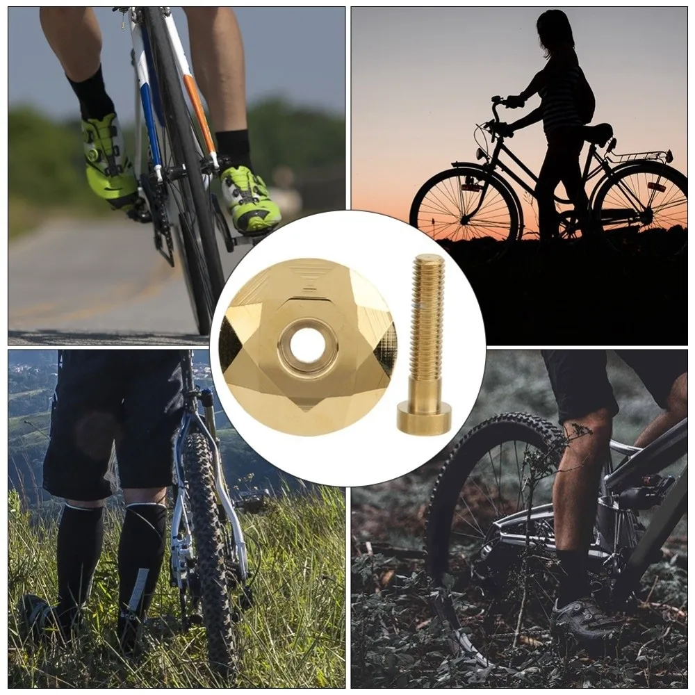 **High-Strength Steel Screws**:Crafted from high-strength steel, these screws are designed to be both strong and durable, ensuring long-lasting performance. ** Precision CNC Machining**:Utilizing CNC machining for precision turning, this component boasts fine workmanship and superior strength for reliable functionality. **Vibrant Electroplate Colors**:Available in colorful and gold options, the electroplated finish adds a beautiful touch to your bike's appearance. **Ideal Fit for Your Fork**:With a diameter of approximately 31.8mm (1.25 inch), this cap is suitable for front forks with an upper tube diameter of 28.6mm. **Easy Installation**:Designed for convenience, this cap is easy to install and use, making bike modifications easy. Item Type: Bicycle Headset Cap Material: Aluminium alloy + steel Color: Colorful, Gold (optional) Diameter: approx. 31.8mm/1.25inch Compatible for:28.6mm/1.1inch diameter forks Screw: M6*30mm/1.2inch Package List: 1 x Bicycle Headset Cap 1 x Screw Notes: 1.The real color of the item may be slightly different from the pictures shown on website caused by many factors such as brightness of your monitor and light brightness. 2. Please allow slight manual measurement deviation for the data.