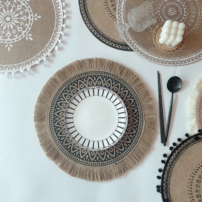 Tapete para tazas de café, mantel individual para mesa, mantel antideslizante de estilo nórdico, aislamiento térmico, decoración de muebles, estampado de flores redondas, 1 ud.