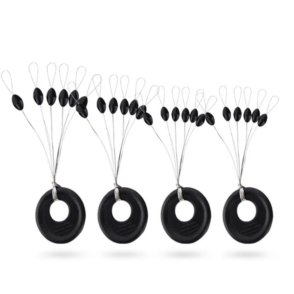 Tapón de goma negro para pesca, conector Bobber Space Bean, accesorios de aparejos de línea de pesca, 6 en 1, 10 grupos por juego, 60 unidades
