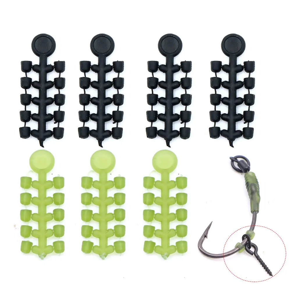 Característica: Los topes de anzuelo se utilizan para mantener los microgirillos, los anillos de aparejo y los tornillos de cebo en los ganchos.Hecho de caucho duradero.