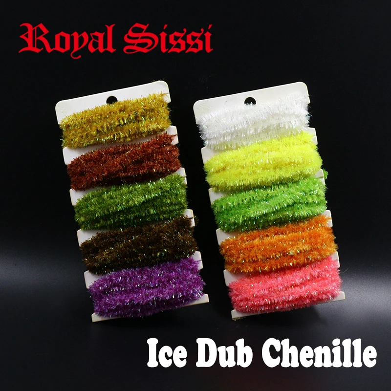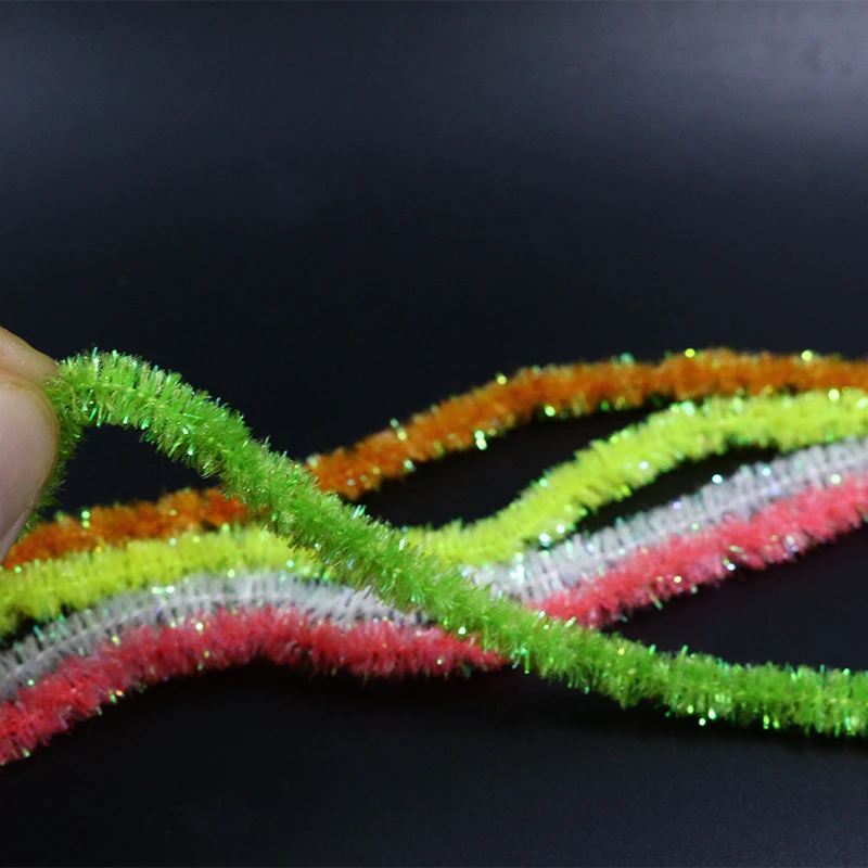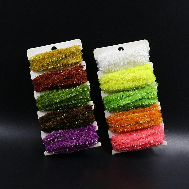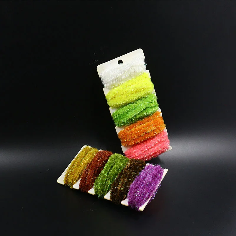 Tarjeta de 5 yardas, hilo de chenilla con dobladillo de hielo para atado de moscas de bugger de lana, 5 colores surtidos, moscas de lubina de chenilla brillantes, materiales para atar moscas