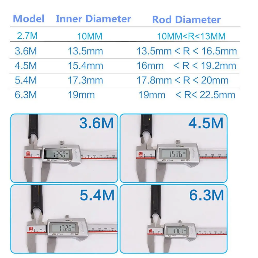 2,7 M-Traje para diámetro de varilla 10mm 3,6 M-Traje para diámetro de varilla 13,5mm 4,5 M-Traje para diámetro de varilla 15,4mm 5,4 M-Traje para diámetro de varilla 17,3mm 6,3 M-Traje para varilla diámetro 19mm paquete incluido: tarjeta enrollable de pesca de 10 piezas (color aleatorio)