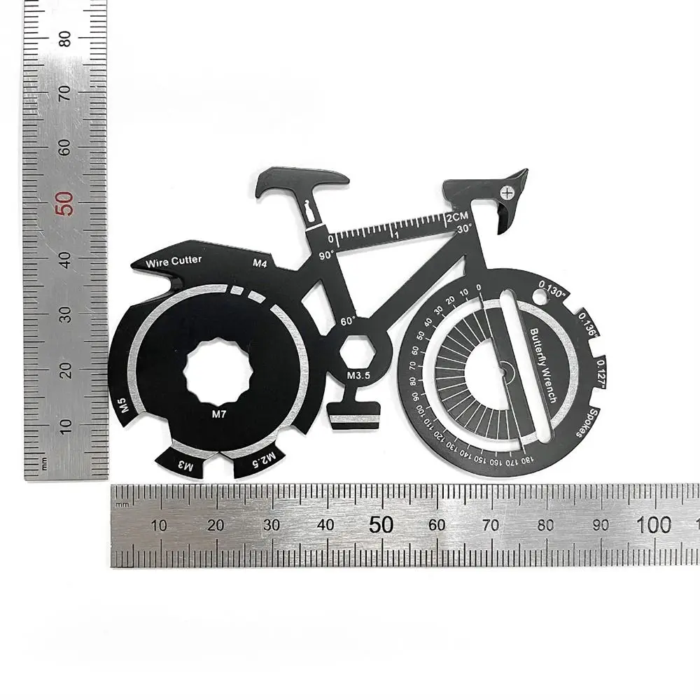 Multiherramienta de bolsillo contiene 20 funciones esenciales, incluyendo un abrebotellas, destornillador, llave de radios de bicicleta, regla imperial y métrica, y más.