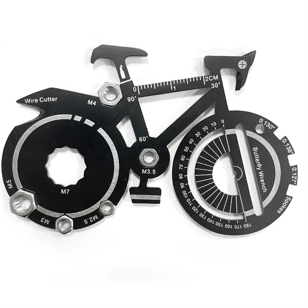 Multiherramienta de bolsillo contiene 20 funciones esenciales, incluyendo un abrebotellas, destornillador, llave de radios de bicicleta, regla imperial y métrica, y más.