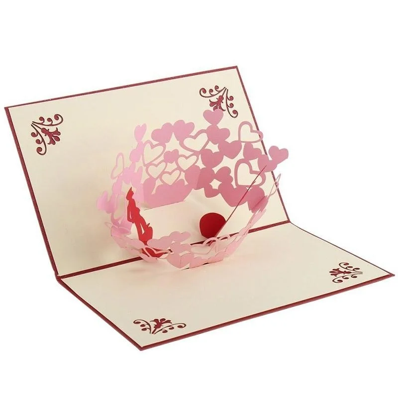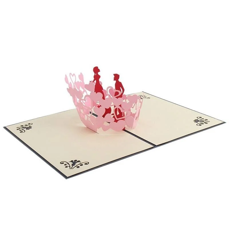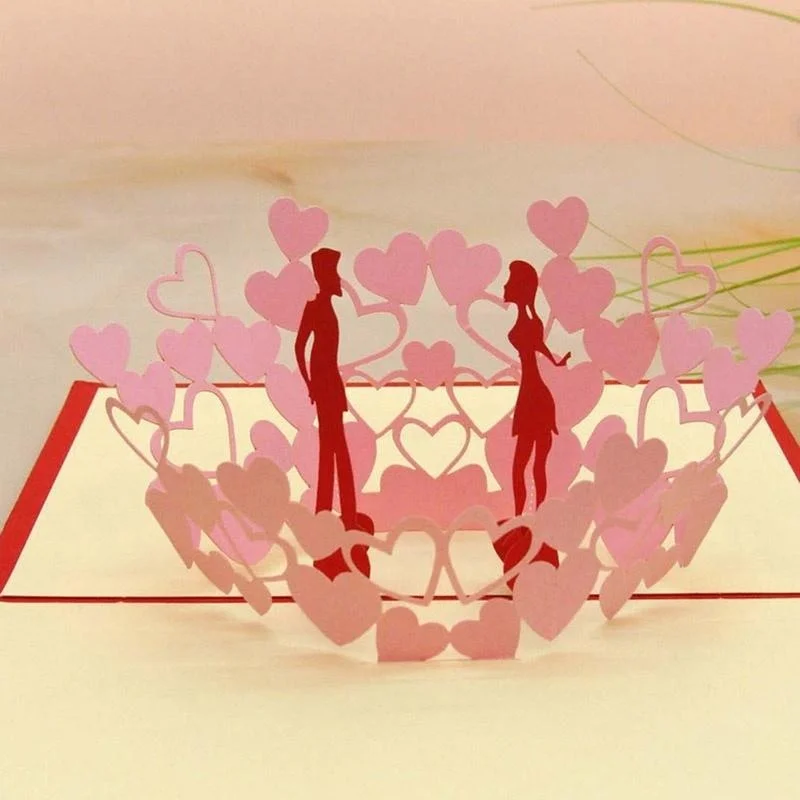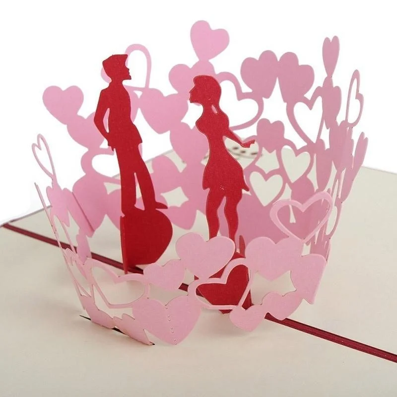 Tarjetas de amor Pop Up hechas a mano 3D, invitaciones de pareja de boda, tarjetas de felicitación, tarjeta de felicitación roja, tarjeta postal para parejas