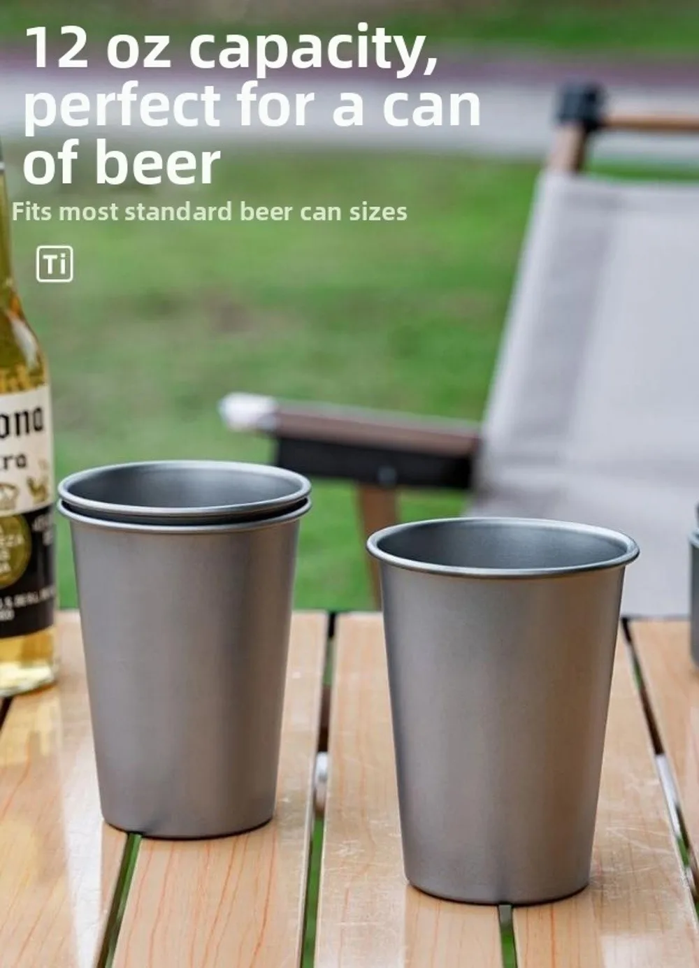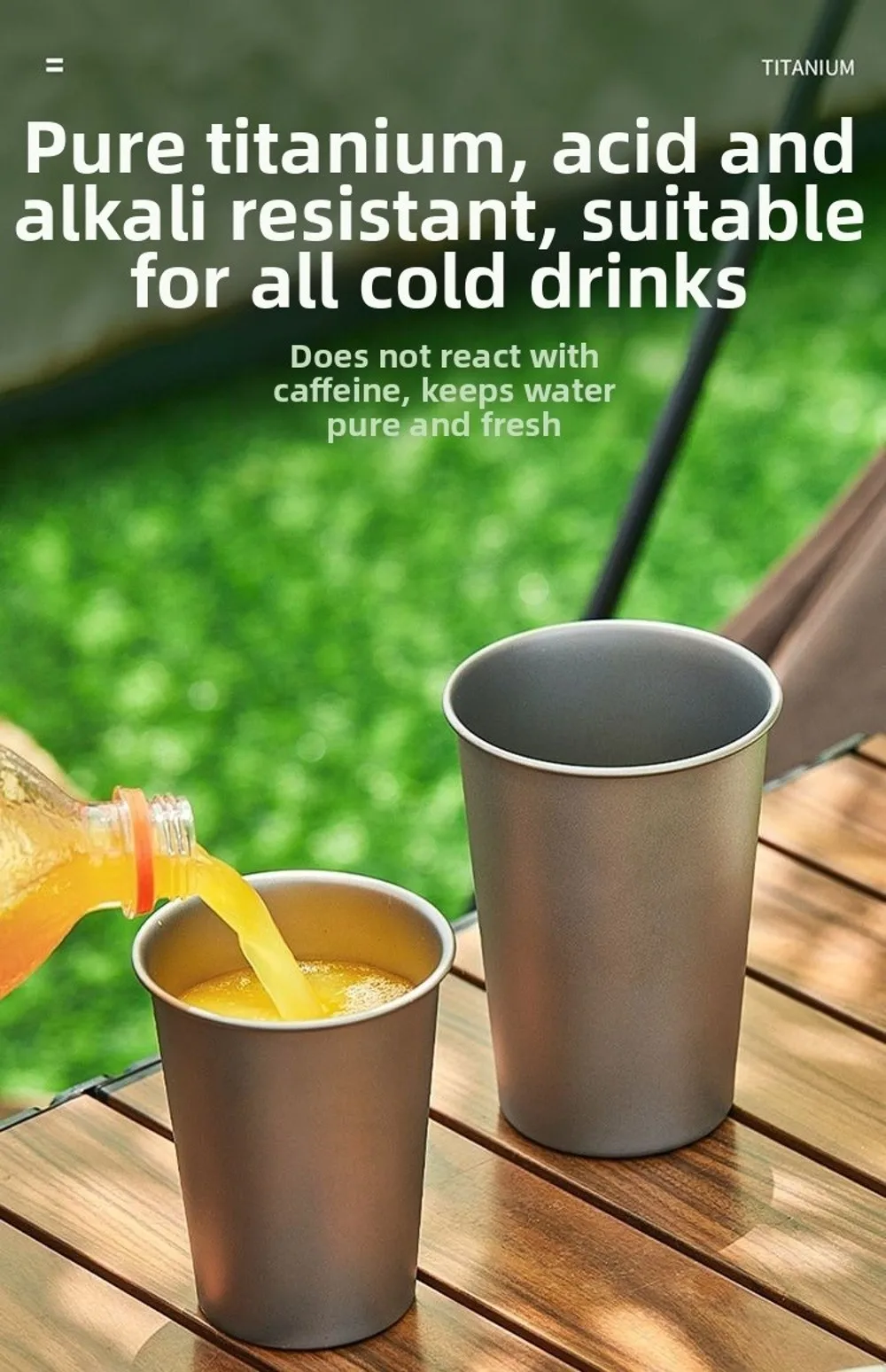 Taza de titanio, Taza de cerveza de titanio, Material: titanio, Fabricada con titanio puro, esta taza es liviana pero resistente, perfecta para aventuras al aire libre.