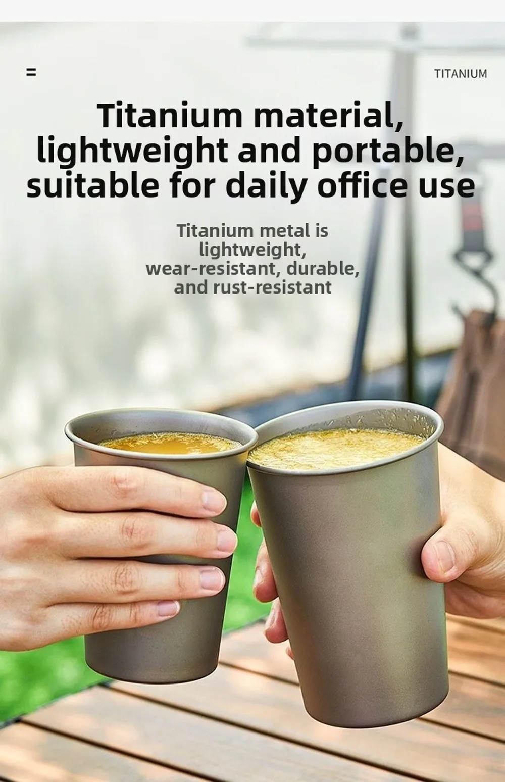 Titanium Mug,Titanium Beer Mug,Material:Titanium,Crafted from pure titanium, this mug is lightweight yet resilient, perfect for outdoor adventures.
