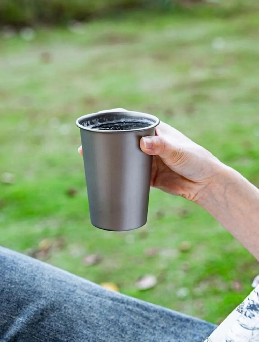 1pc Titanium Alloy Outdoor Drinking Cup Frosted Texture Beer Mug