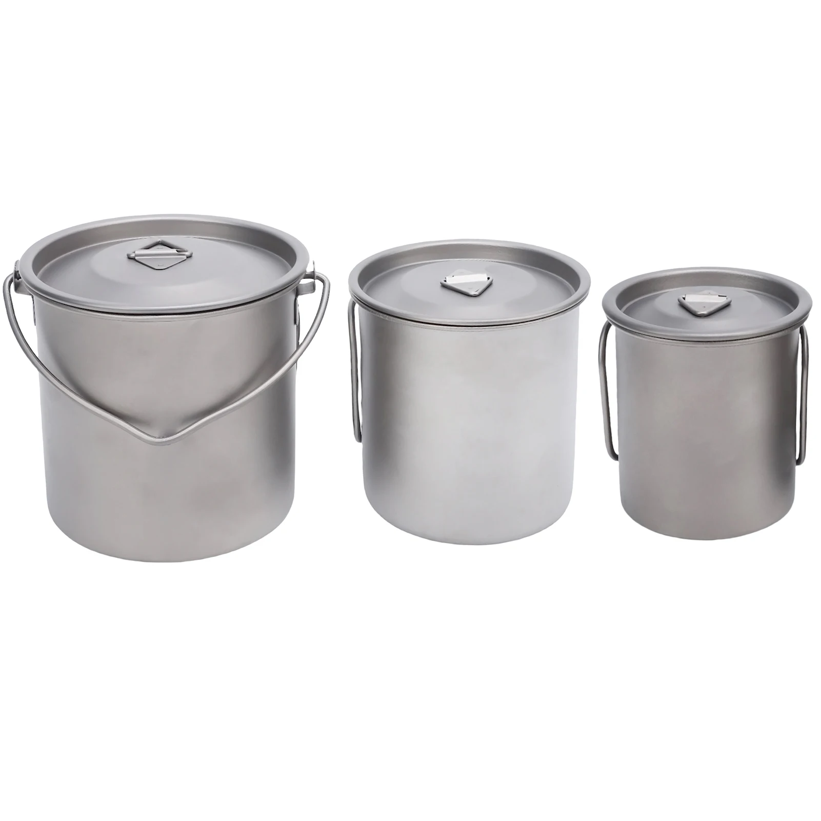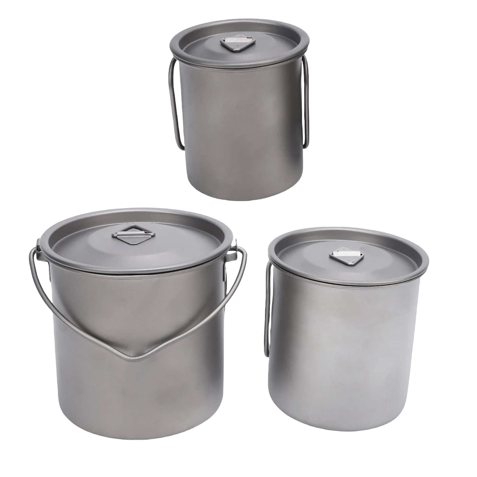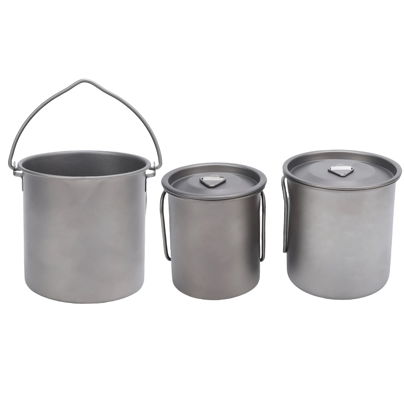 1.Juego de tazas de camping Ti portátiles: tres tazas de camping con tapas, asas plegables y bolsas de malla, convenientes para actividades al aire libre.