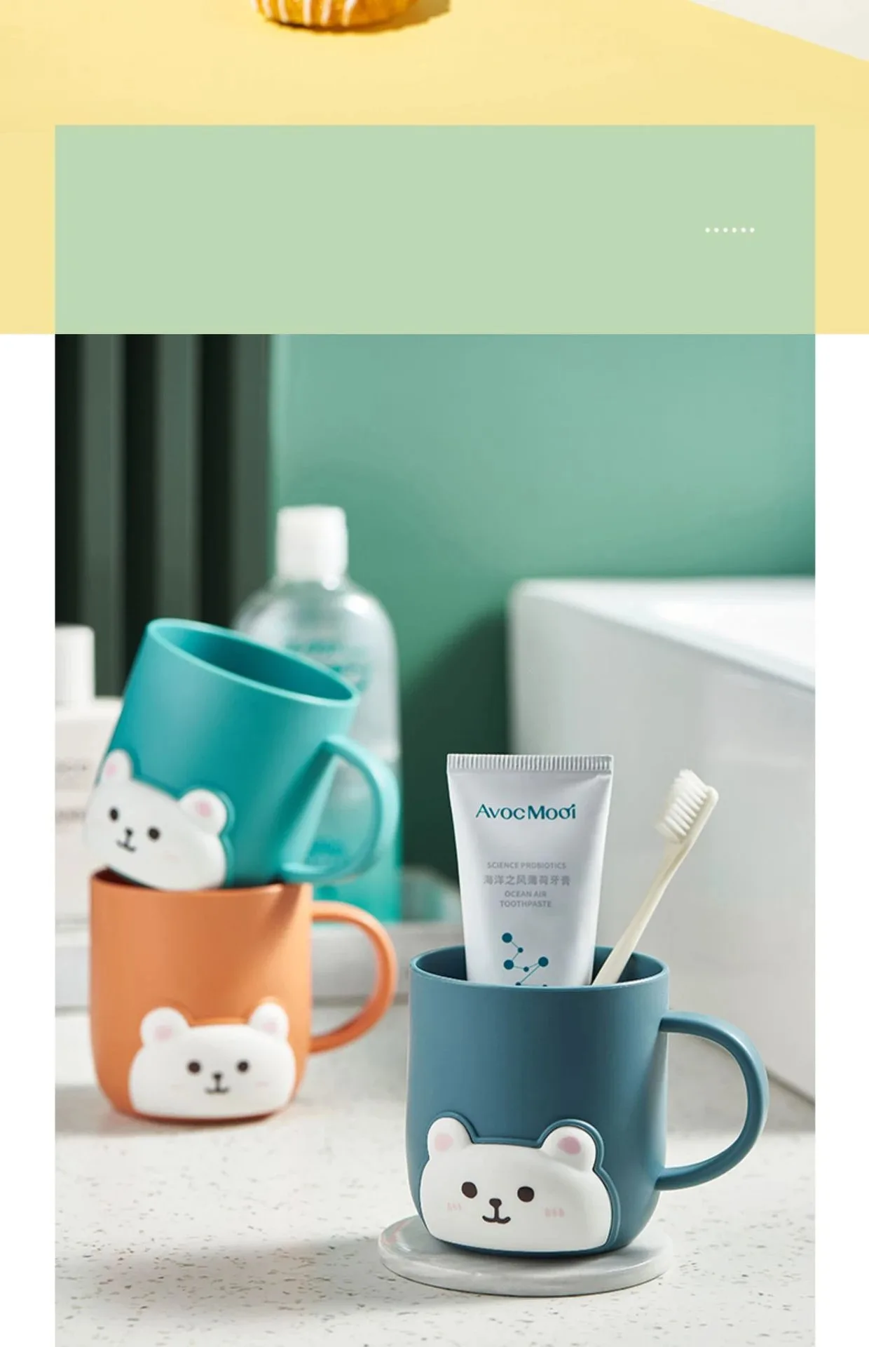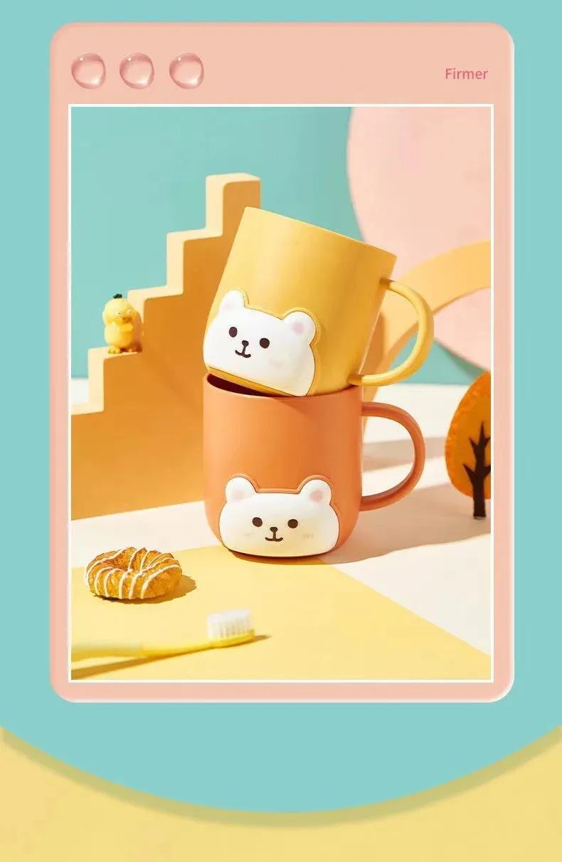 Taza de cepillo de dientes para baño de 1 a 2 piezas, oso para niños, dormitorio de estudiantes, gárgaras de dibujos animados, productos de plástico para niños, artículos para el hogar