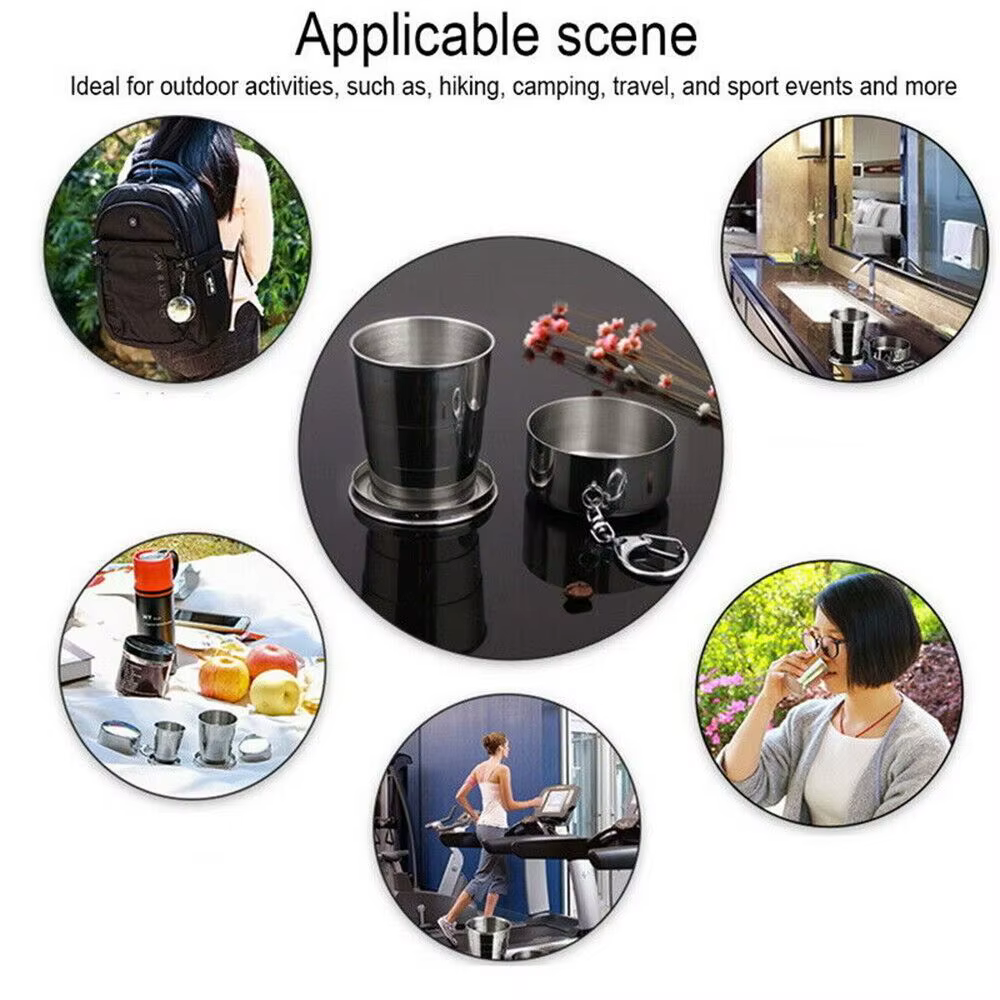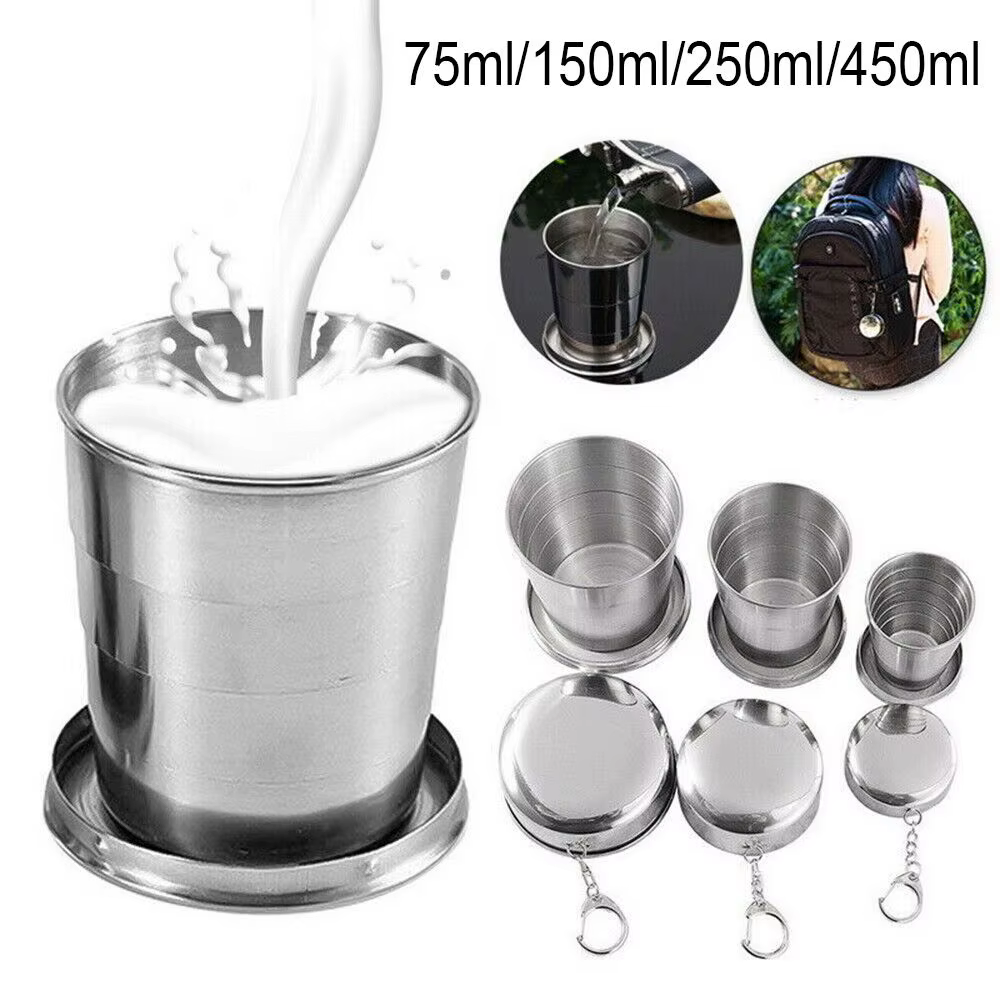 Condition: Brand New High Quality Material: Stainless Steel Color: Silver Size: 5*2cm/6.5*3cm/8*3cm/9.7*3.7cm Capacity: approx. 75ml/150ml/250ml/450ml Features: Safe material: The collapsible travel cup is made of premium quality stainless steel, nontoxic, odourless, anti rust and corrosion resistant. Folding design: Collapsible design, made for space saving and easy to carry. Cup expands and collapses and has a protective cover that you can put over it to keep it small. Easy to carry: With a lid and keychain, easily take around and store. Fits well in your pocket, purse, backpack, suitcase. Dustproof lid: Tight fitting the lid to prevent dust and dirt. Portable: It is a must for the traveler. It helps you take medication and drink anywhere. Widely used: This folding water cup is suitable for the travel, hiking, camping, outdoor, fishing, mountaineering and other outdoor activities. Multipurpose: Can use as reusable cup, camping mugs, travel cups, camping cups, collapsible coffee cup, folding cup and more. Easy to clean: Dishwasher safe or you just rinse with running water. Package includes: 1PC x Collapsible Cup Notice: Conversion : 1 inch=25.4mm or 1mm=0.0393 inch,1cm=10mm Please allow 1-3mm error due to manual measurement. Pictures: Due to the difference between different monitors, picture may not reflect the actual color of the item.