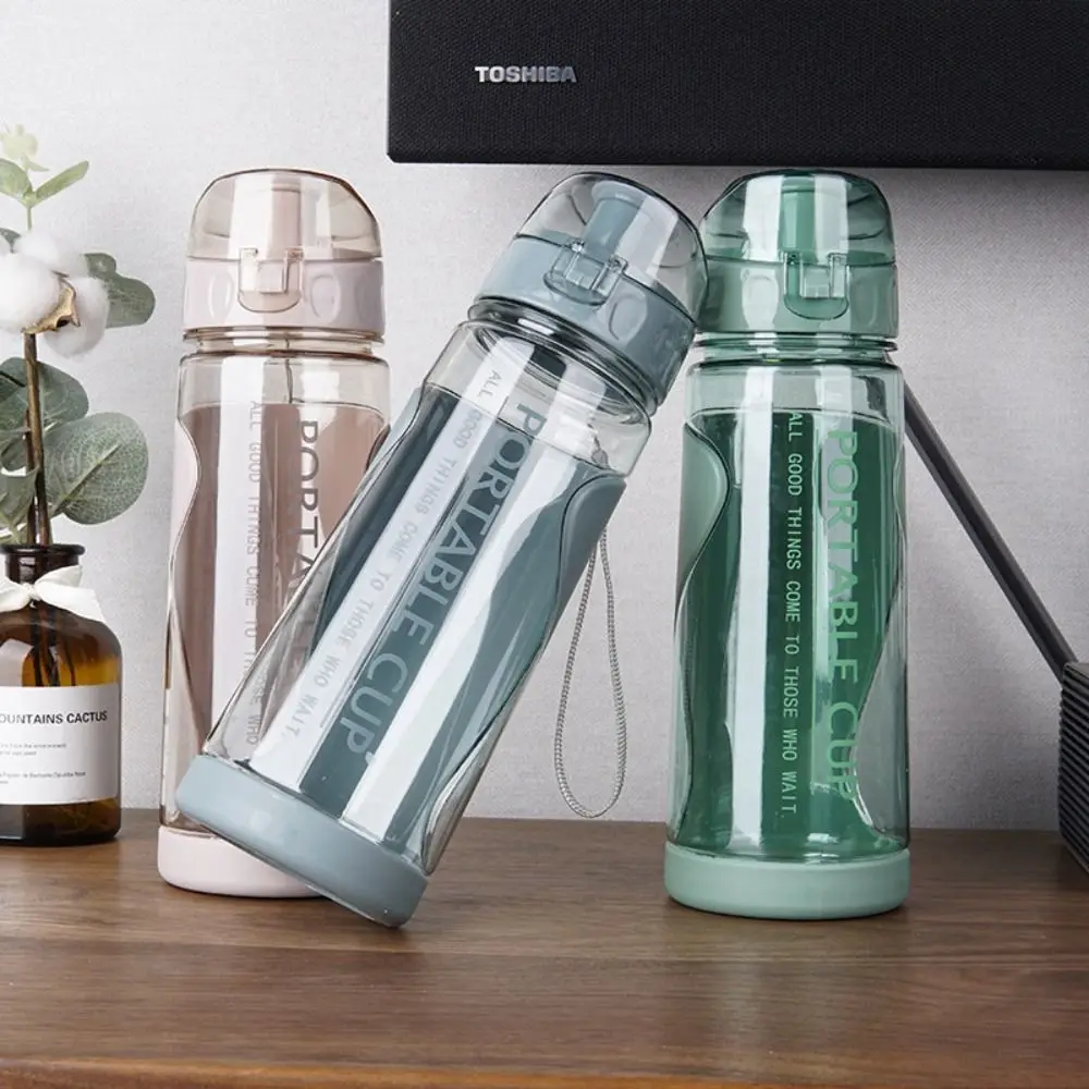 Color: Verde/Rosa/Tamaño gris azul: 22cm de alto, diámetro de la boca 5,5 cm, diámetro inferior 7,5 cm Material: PC Capacidad: 580ML El paquete incluye: 1 botella Características: 1. Hecho de plástico de grado alimenticio, no tóxico, la tapa a prueba de polvo de cualquier contaminación también protegerá el líquido interno, seguro para el uso del cuerpo humano. 2. El cuerpo antideslizante no solo le proporciona una mayor fricción para agujerear, evita caídas accidentales en la mayor medida, sino que también es más cómodo de sostener en las manos y disfrutar de sus bebidas. 3. El anillo de sellado a prueba de fugas incorporado le permite poner la botella en diferentes direcciones, y el líquido se bloqueará en el interior sin fugas, solo tómese la facilidad de usarlo. 4. Viene con correa de mano, solo le permite colgarlo en bolsas o llevarlo a su conveniencia, fácil de almacenar. 5.Ideal para utilizarlo en la oficina, gimnasio, escuela, ciclismo, viajes, escalada u otras actividades interiores o exteriores.