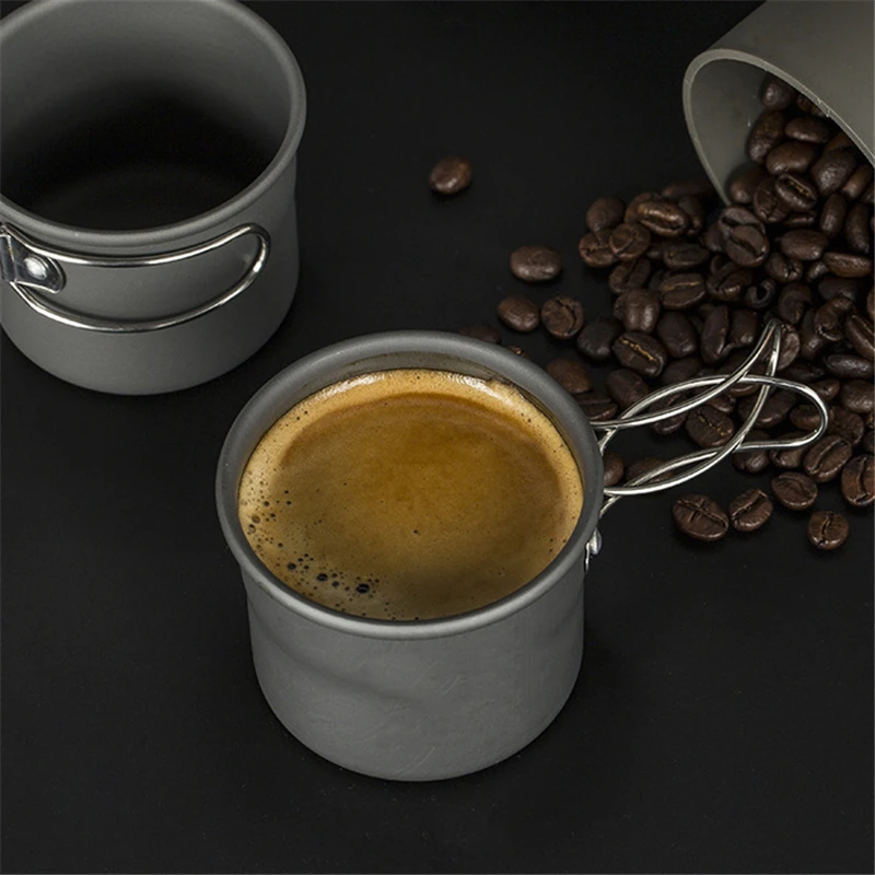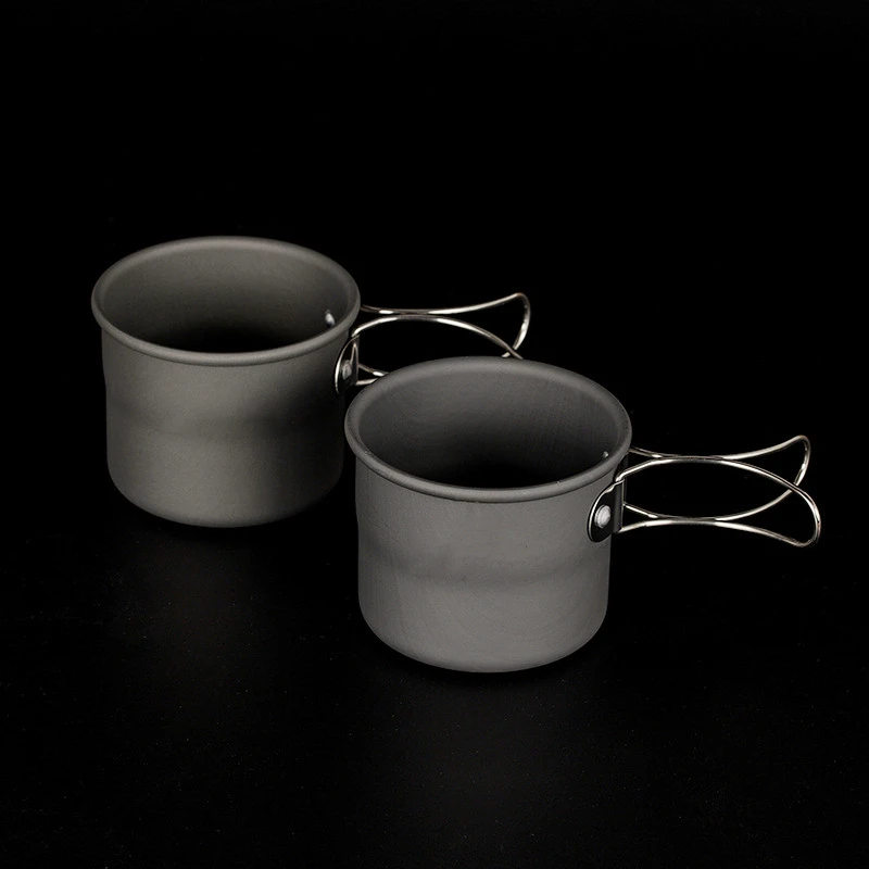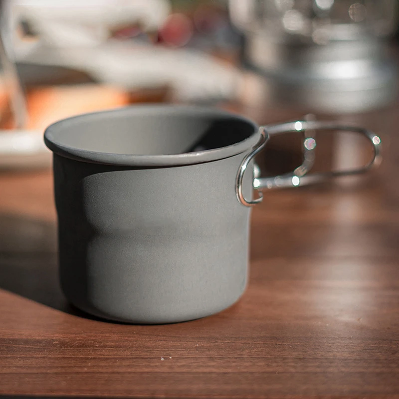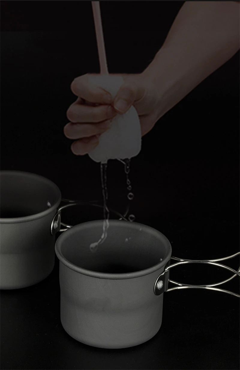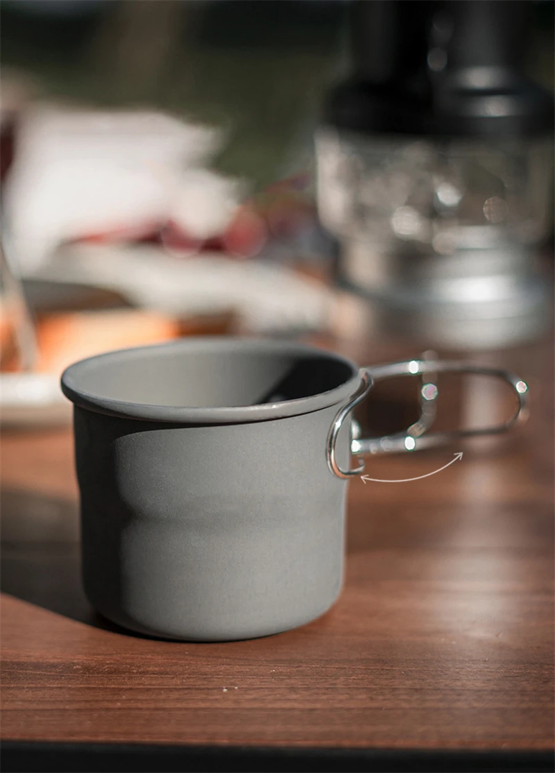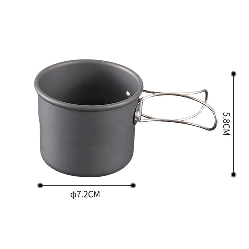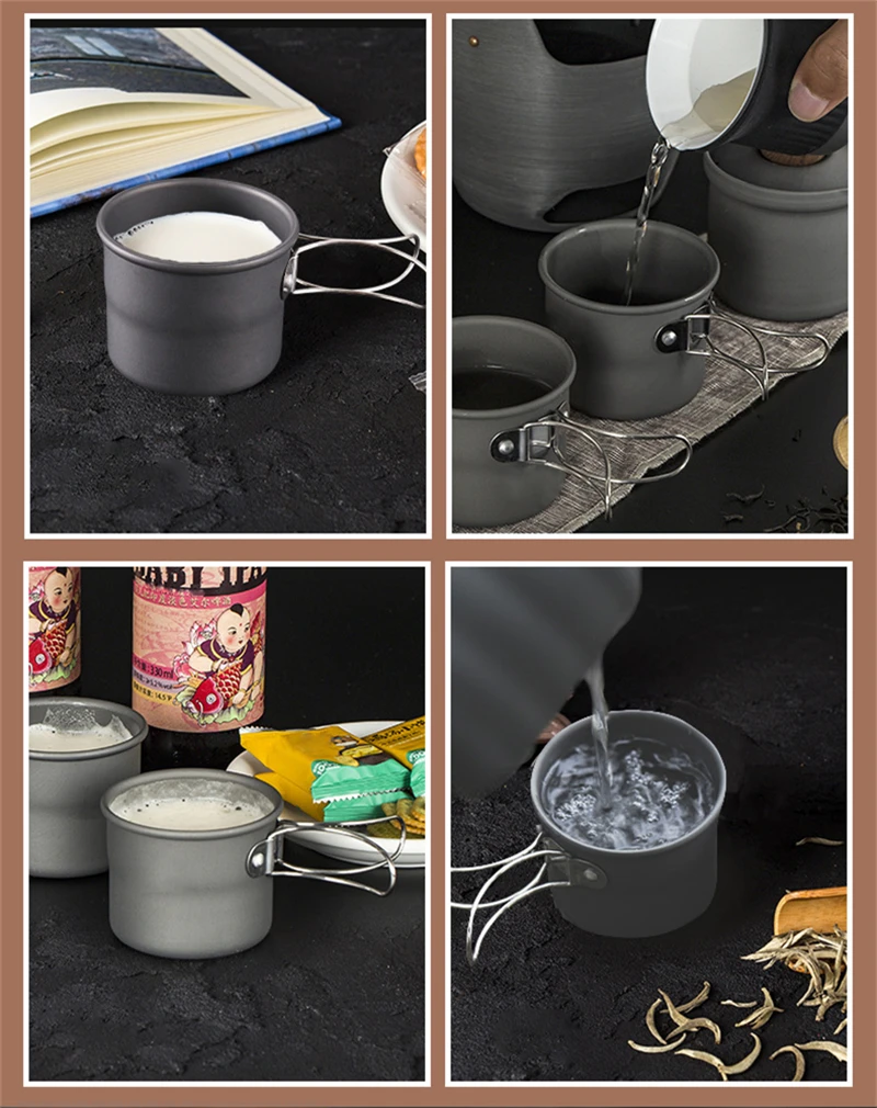 1. Material de alta calidad: Esta taza de camping está hecha de alúmina dura de alta calidad + acero inoxidable. Es resistente a la corrosión, fácil de limpiar y duradero.