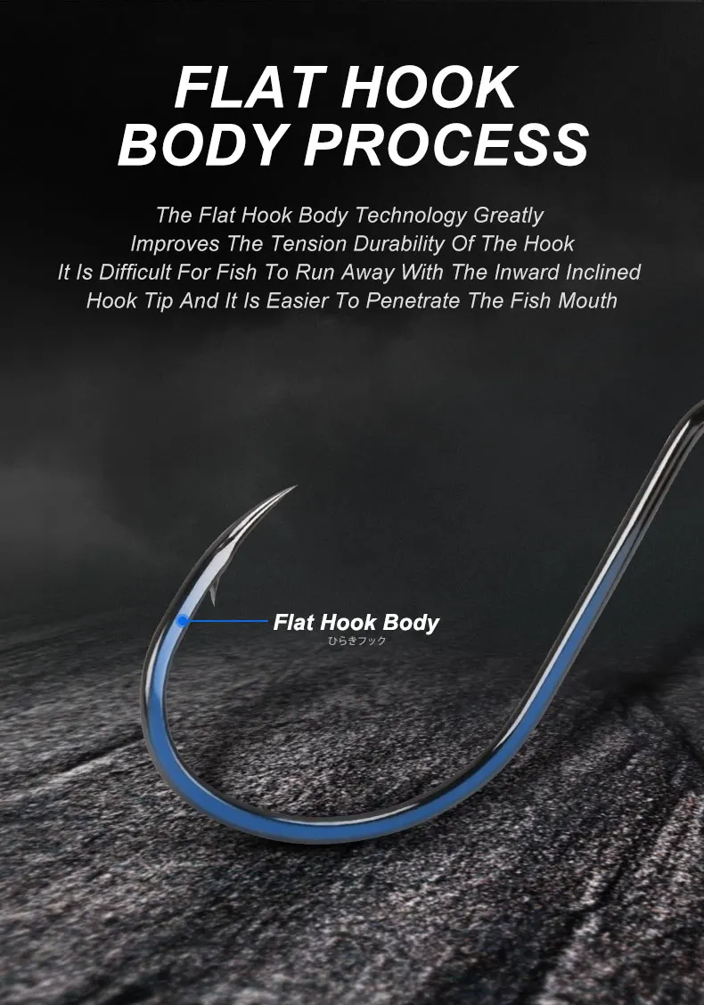 Fabricados con acero con alto contenido de carbono, estos anzuelos de pesca ofrecen una durabilidad y resistencia superiores para la pesca en agua salada.