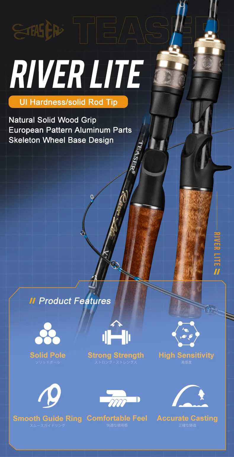 Canna de pescar TEASER 1,53m 1,68m, 2 secciones, potencia UL, caña de pescar de fibra de carbono de fundición, 100g, ultraligera, 2-8g, pesca de trucha
