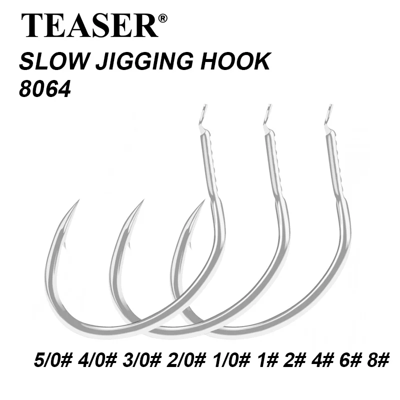 TEASER 8064 10 unids/bolsa anzuelo de Pesca de carpa con púas de acero rico en carbono 1/0 2/0 3/0 4/0 5/0 anzuelos de Pesca de energía de Jigging lento de agua salada