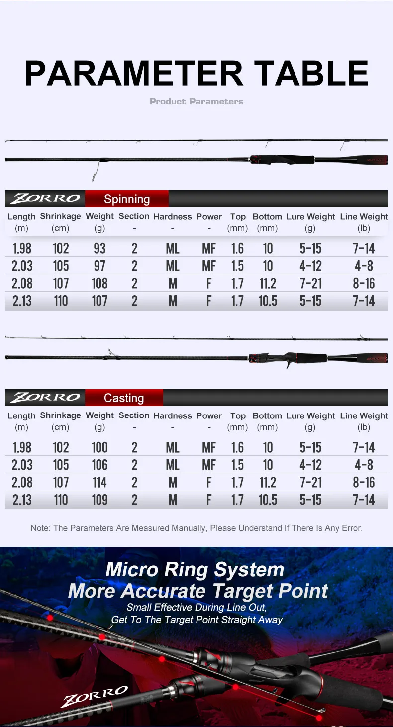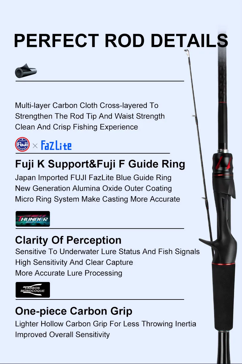 TEASER ZORRO Fuji Accesorios Cañas de pescar giratorias 1,98 M 2,03 m 2,08 m 2,13 M Caña de pescar de alto carbono 2 secciones Baitcasting Pole
