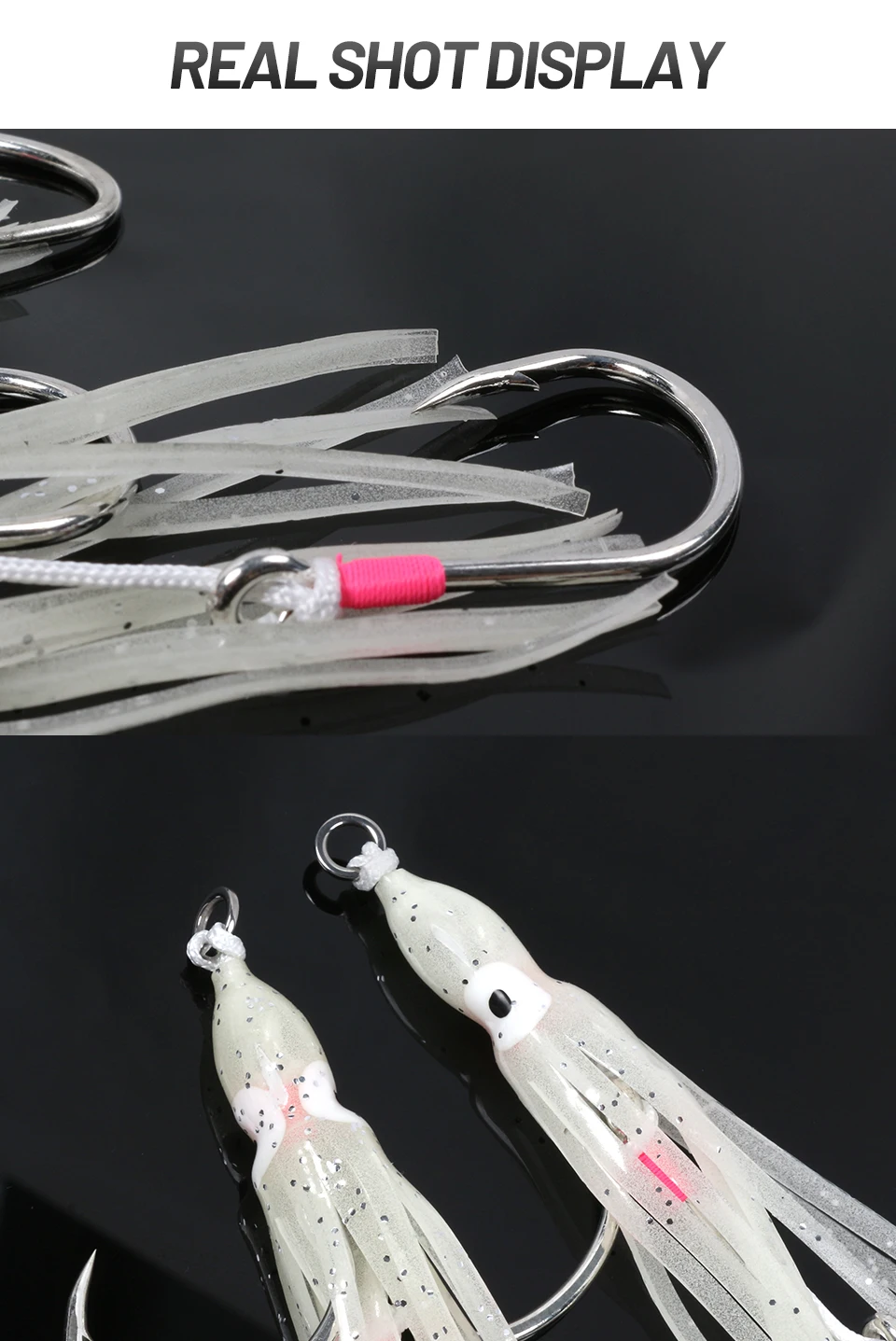 1.Los Harbour Twin Pike Assist están diseñados para pescar en todos los jigs con tamaños para adaptarse a jigs de 40 g a 1000 g.