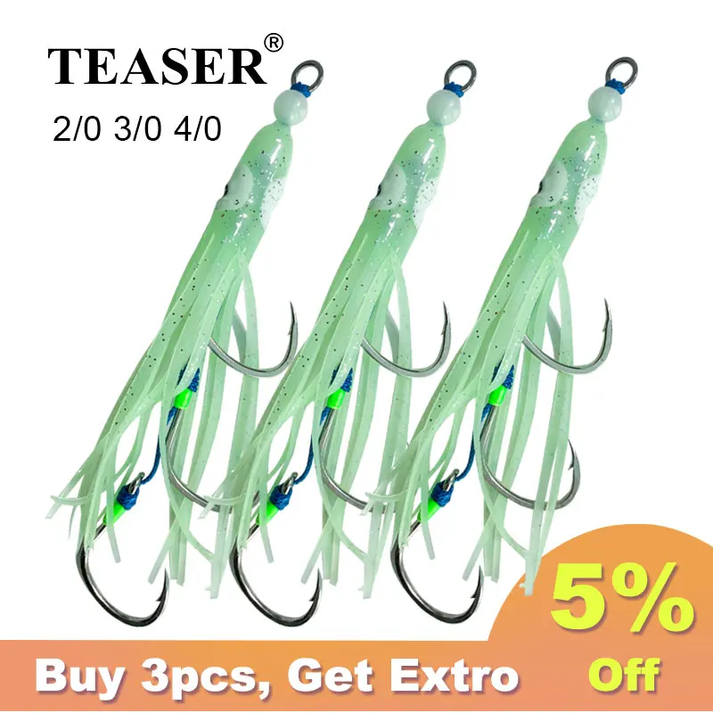 TEASER 2/0 3/0 4/0 anzuelo lento triple asistencia juego de anzuelos de pesca acero con alto contenido de carbono anzuelo de calamar accesorios de señuelos de agua salada