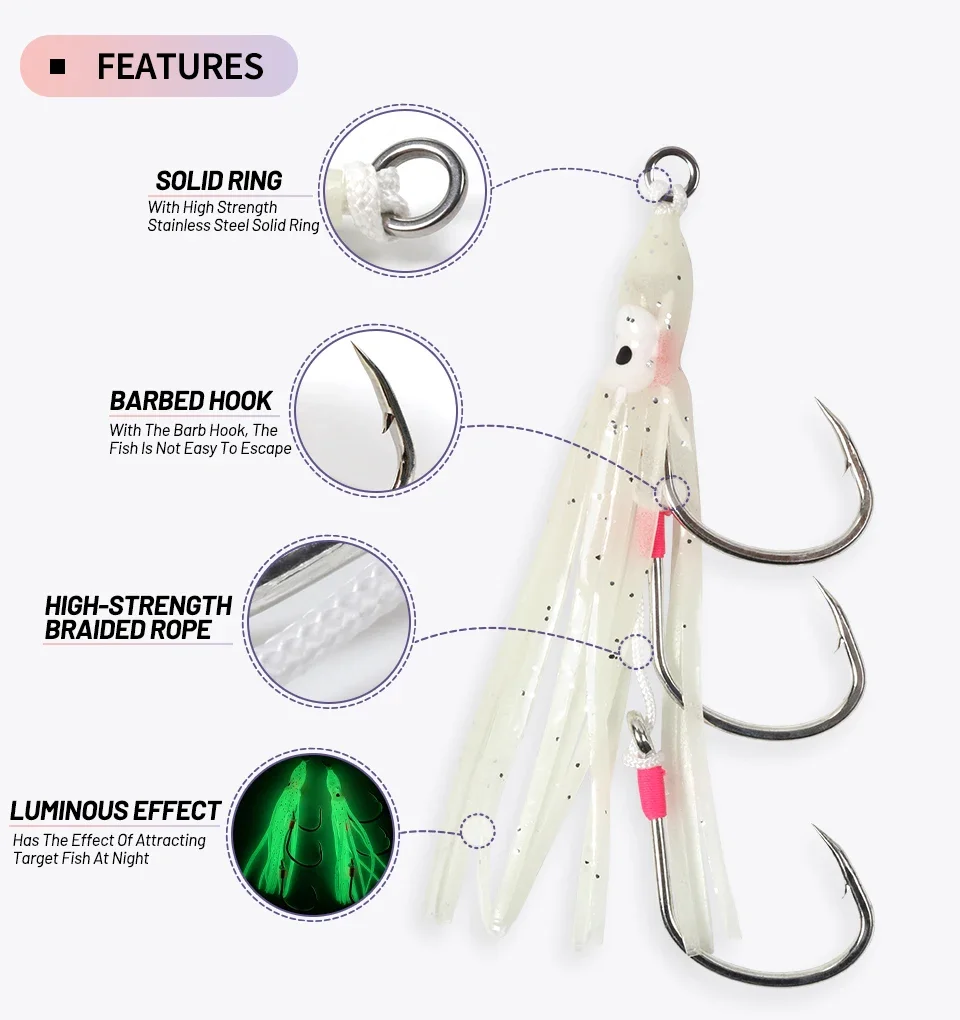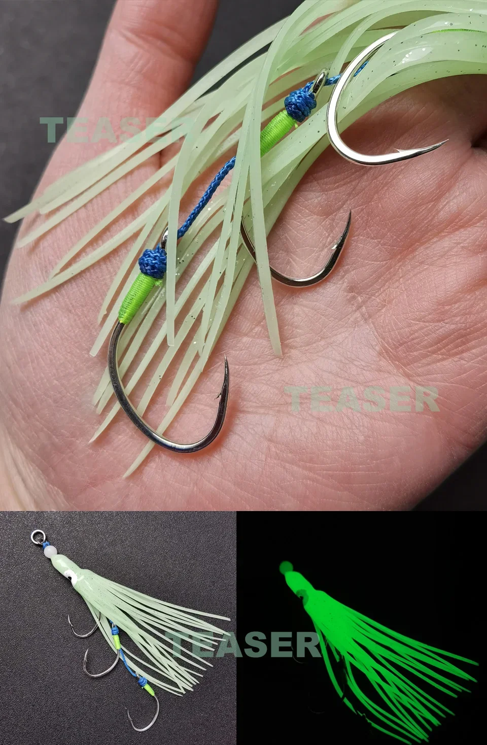 2.Está hecho de ganchos Harbour Pike súper afilados y resistentes y un cable auxiliar de PE de 16x que se puede utilizar como asistencia superior tradicional o superior e inferior para jigging de tono lento.