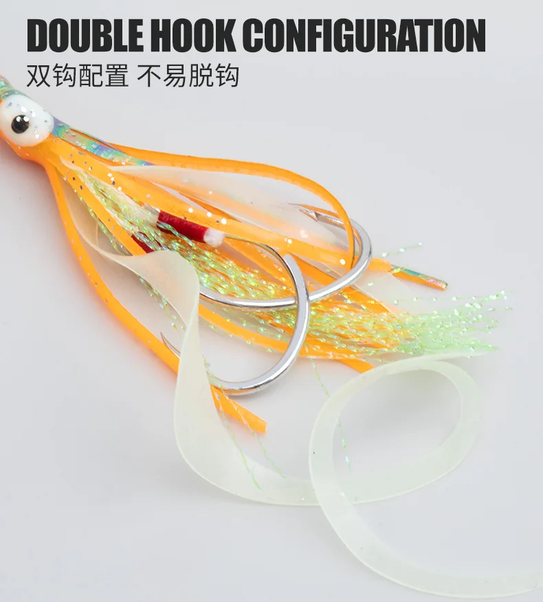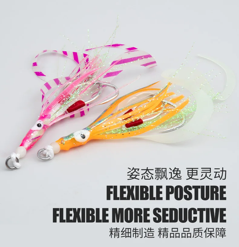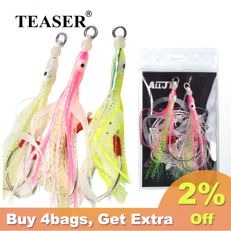 TEASER 2 unids/bolsa ganchos de asistencia luminosas con faldas de calamar señuelo de plantilla lenta luminosa faldas de silicona anzuelo de pesca accesorios de pesca en el mar