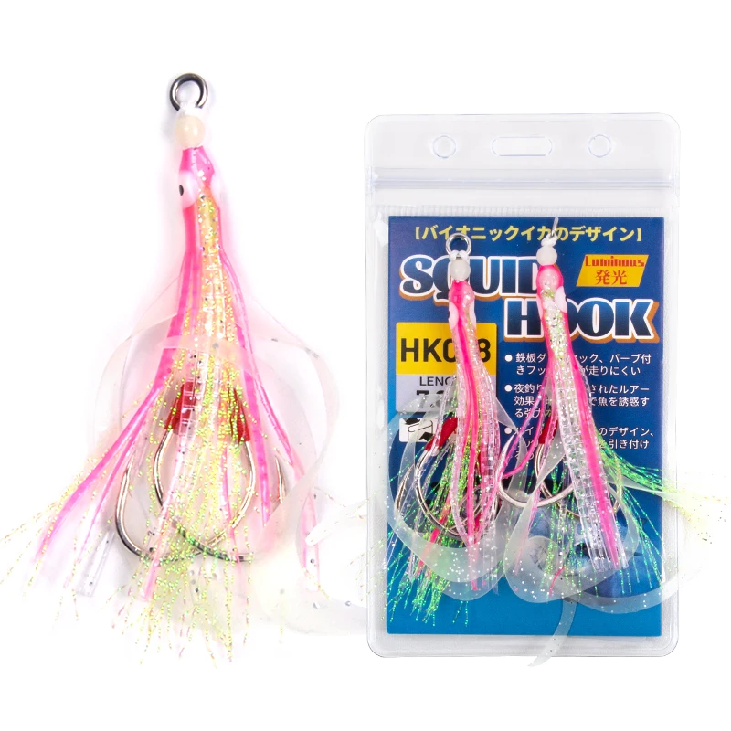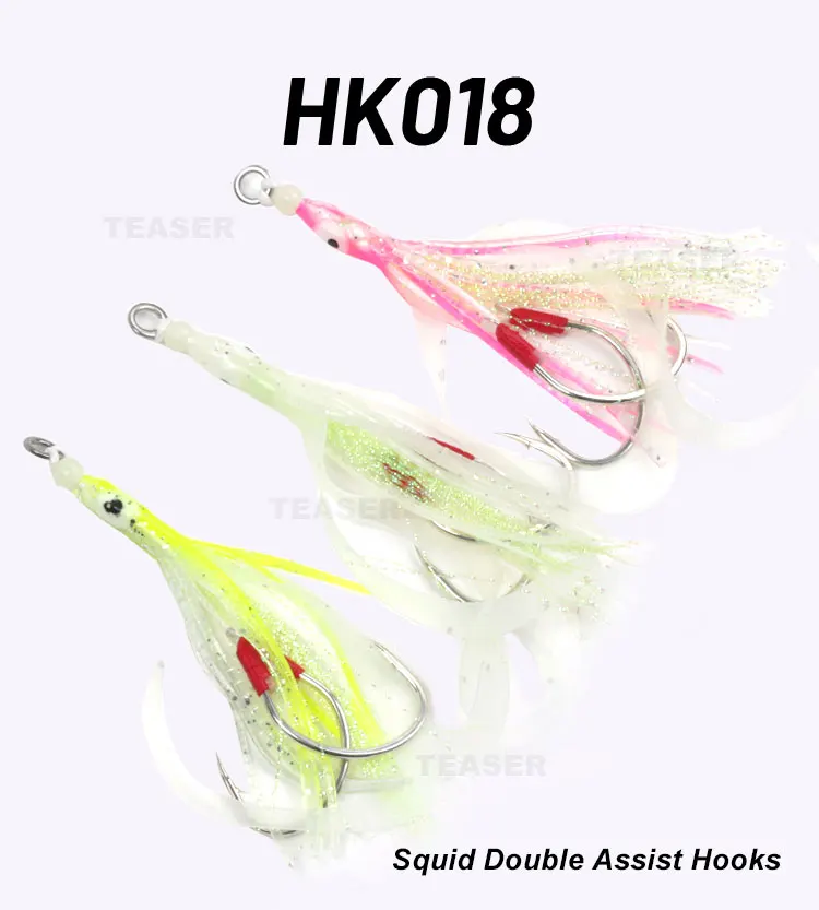 TEASER-falda de calamar de silicona suave, señuelo lento, anzuelo de asistencia para jigging, cebo luminoso para pesca en aguas saladas, accesorios de pesca en aguas profundas