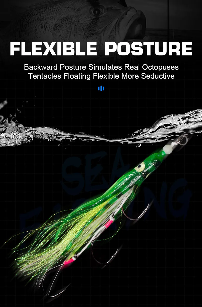 TEASER Inchiku 6/0 8/0 Anzuelo de calamar Anzuelo de jigging Pulpo Calamar Señuelo de pesca de goma UV Resplandor Triple Anzuelo de mar Tai Kabura Peche