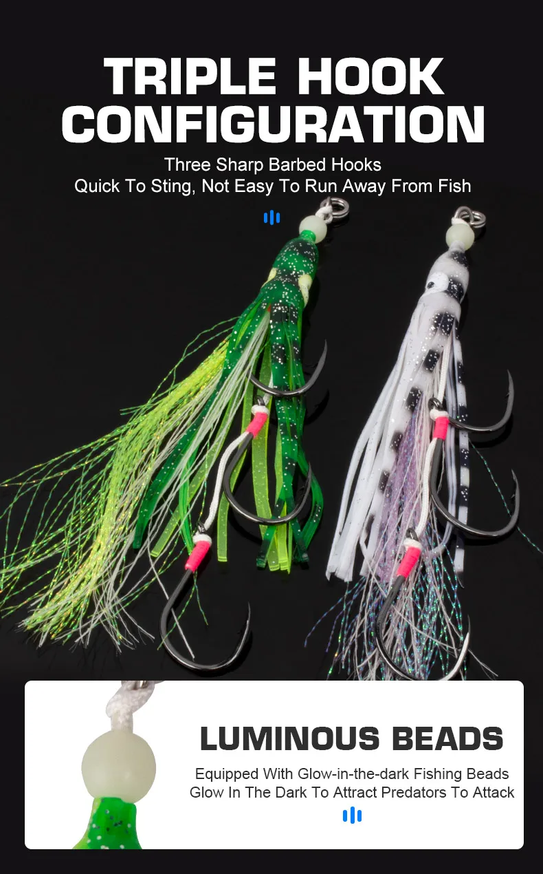2. Está hecho de ganchos Harbor Pike súper afilados y fuertes y cable de asistencia de 16x PE que se puede utilizar como asistencia superior tradicional o superior e inferior para jigging de paso lento.