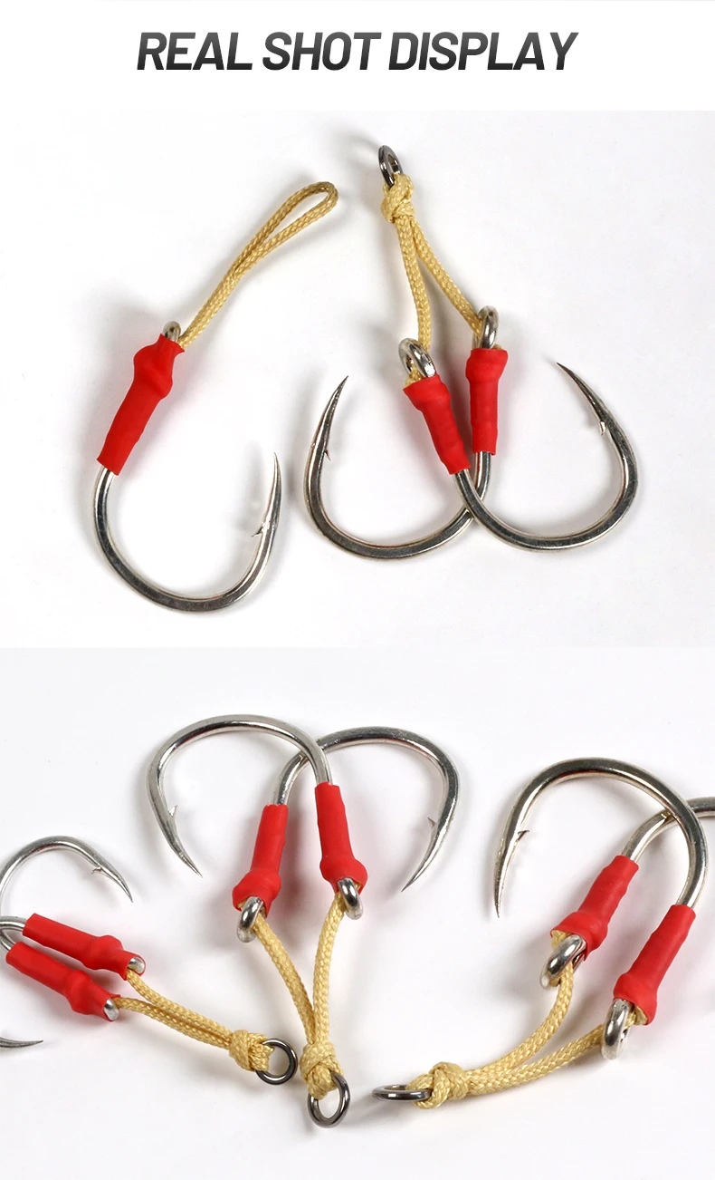 TEASER 10 piezas cama de púas doble/gancho de asistencia individual línea de Kevlar accesorios de pesca de mar anzuelo de plantilla resistencia al agua de mar a la corrosión