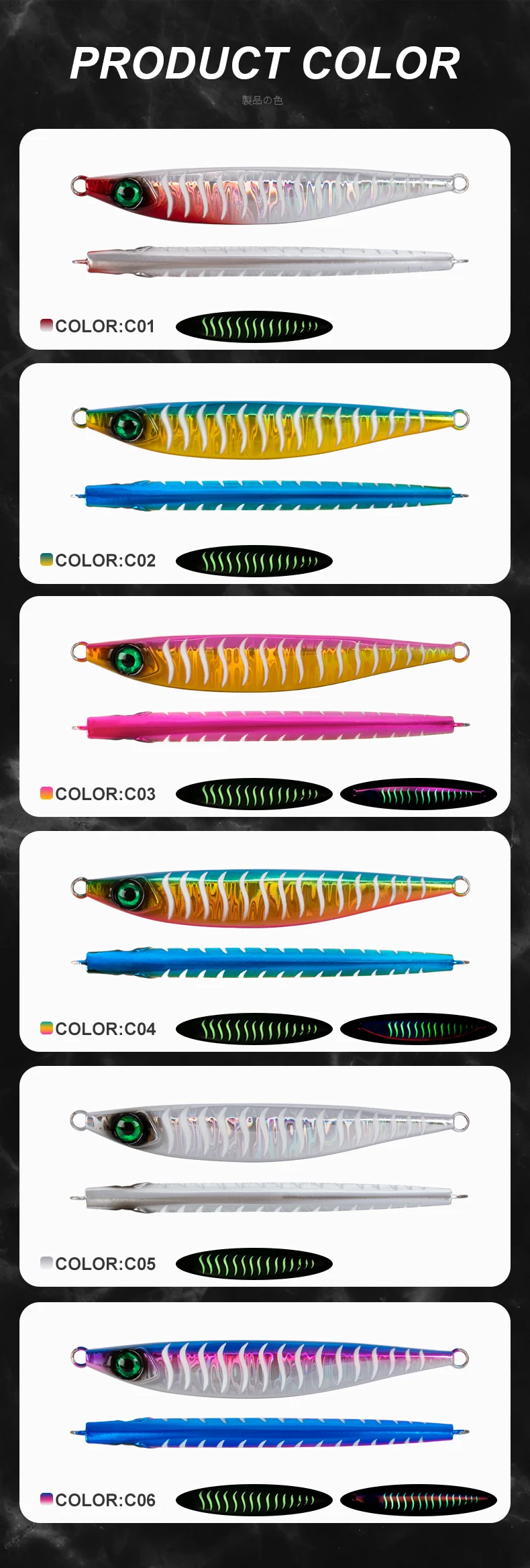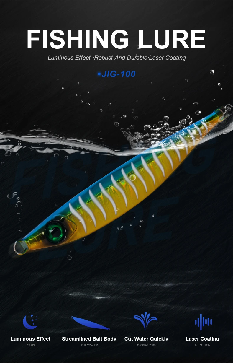 TEASER J100 40g 60g 80g 100g revestimiento láser cebo luminoso de pesca señuelo de Jigging de Metal de agua salada Señuelos de Jigs de hundimiento de caída rápida
