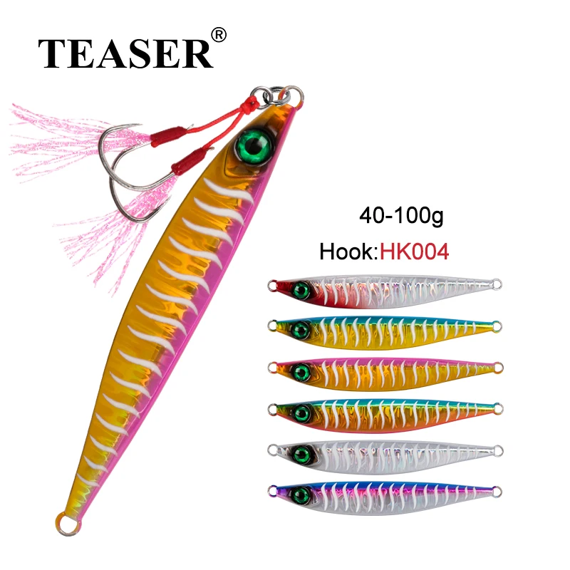 TEASER J100 40g 60g 80g 100g revestimiento láser cebo luminoso de pesca señuelo de Jigging de Metal de agua salada Señuelos de Jigs de hundimiento de caída rápida