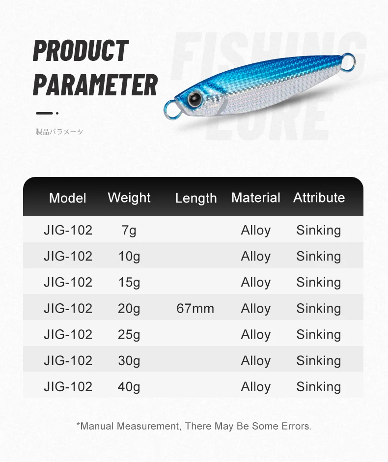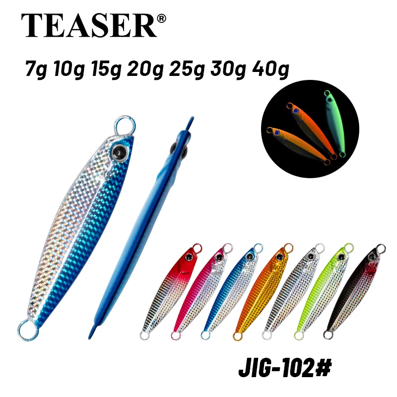 TEASER J102 7g 10g 15g 20g 25g 30g 40g lanzamiento largo pesca Metal Jigging señuelo pequeño peso Jigs cebo Micro láser Metal Jigbait
