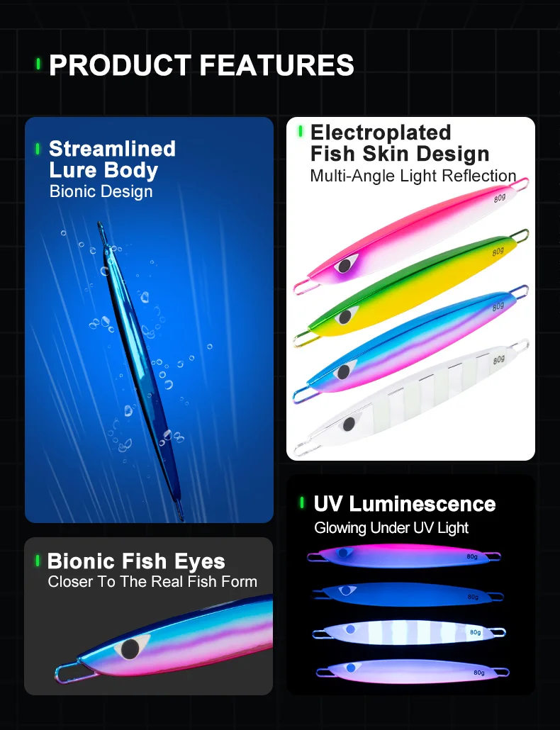 *Capacidad de lanzamiento extraordinaria, gran estabilidad contra corrientes y una acción descendente radical.