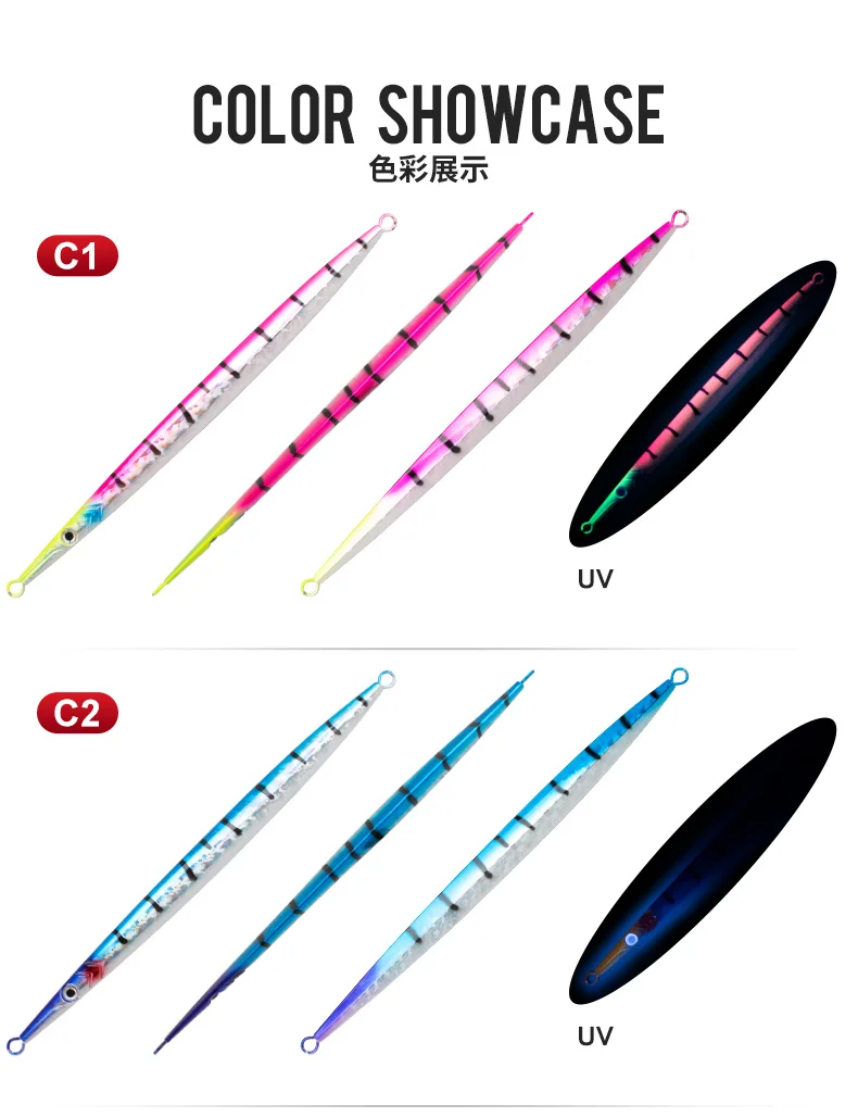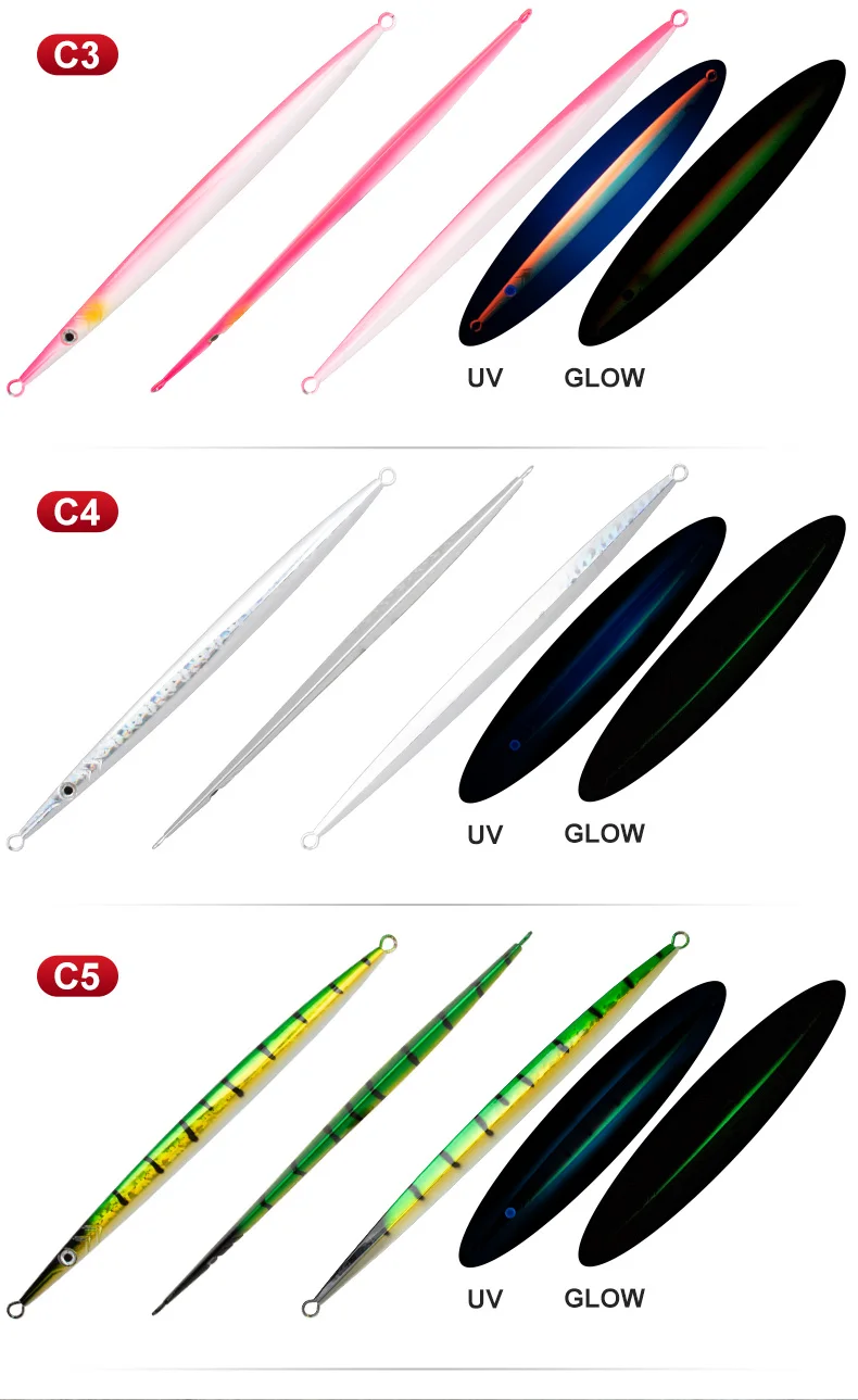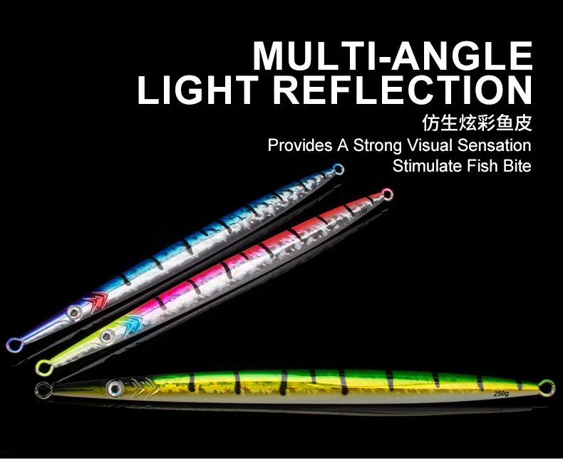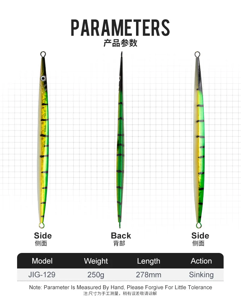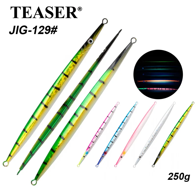 TEASER J129 Metal Jigbait Hard Jigging Lure Hundimiento rápido Luminous Glow Metal Jig Cebo de pesca 250g 28cm