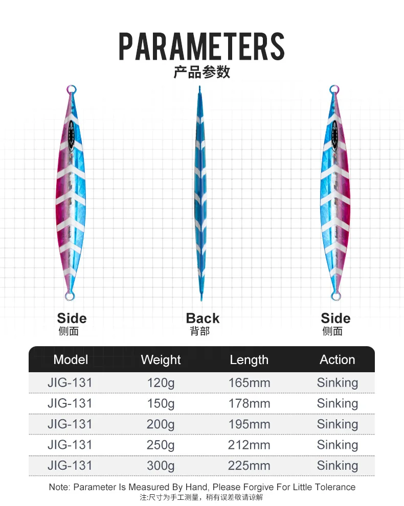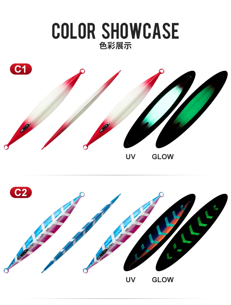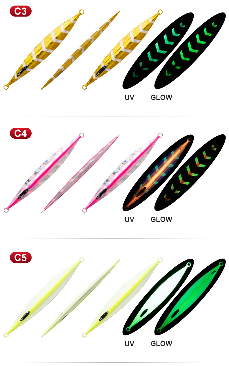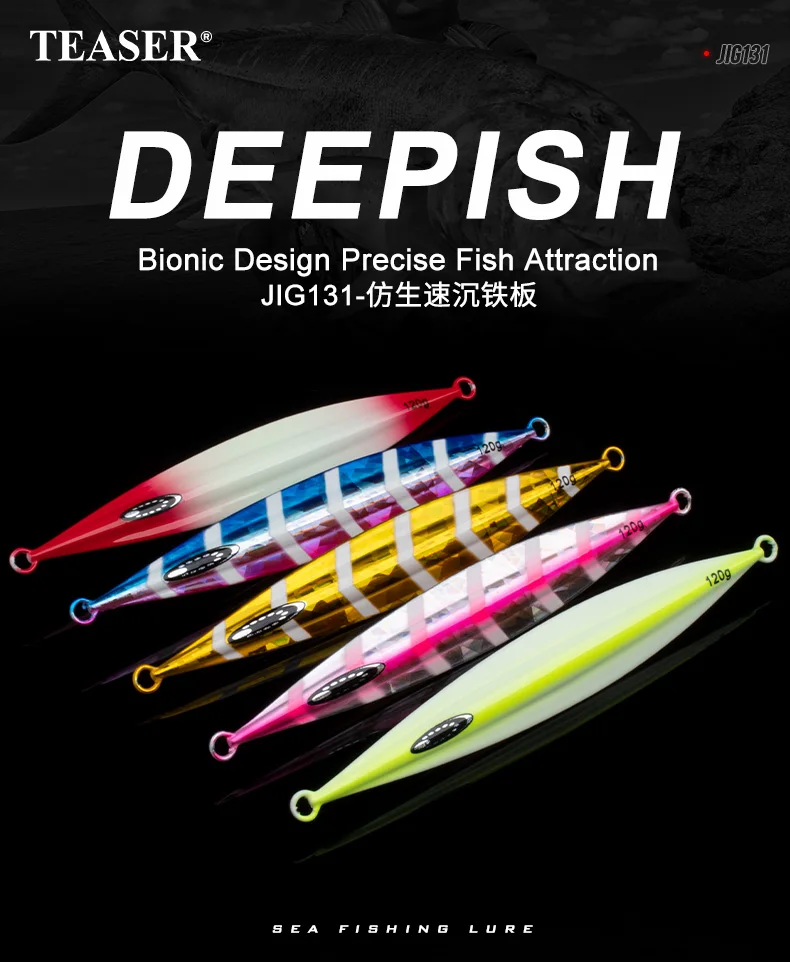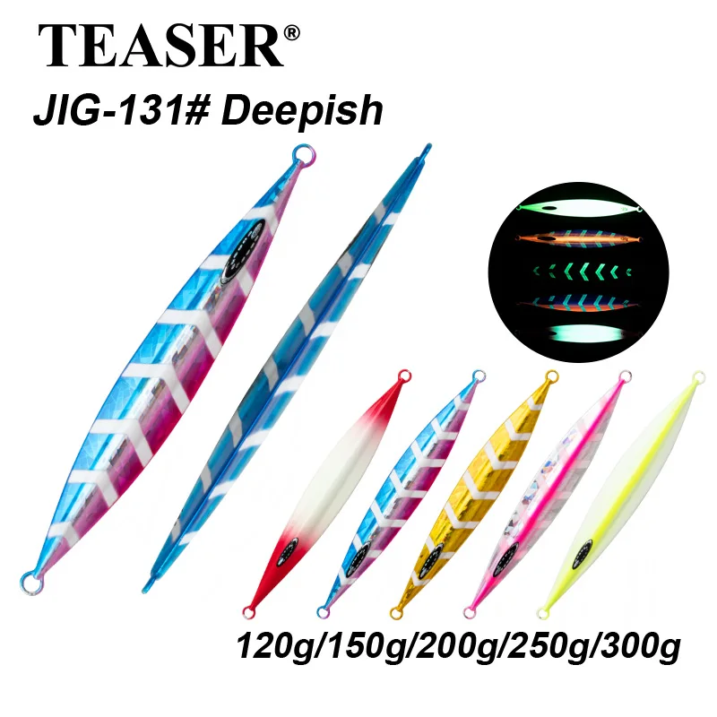 TEASER J131 cebo de Jigging de Metal para pesca en agua salada 120g 150g 200g 250g 300g cebo luminoso señuelo de plantilla de Metal para pesca de hundimiento rápido