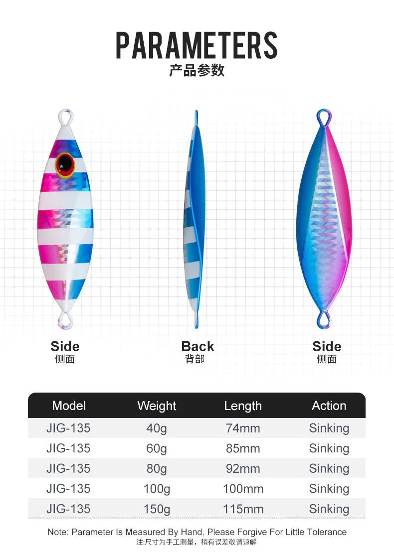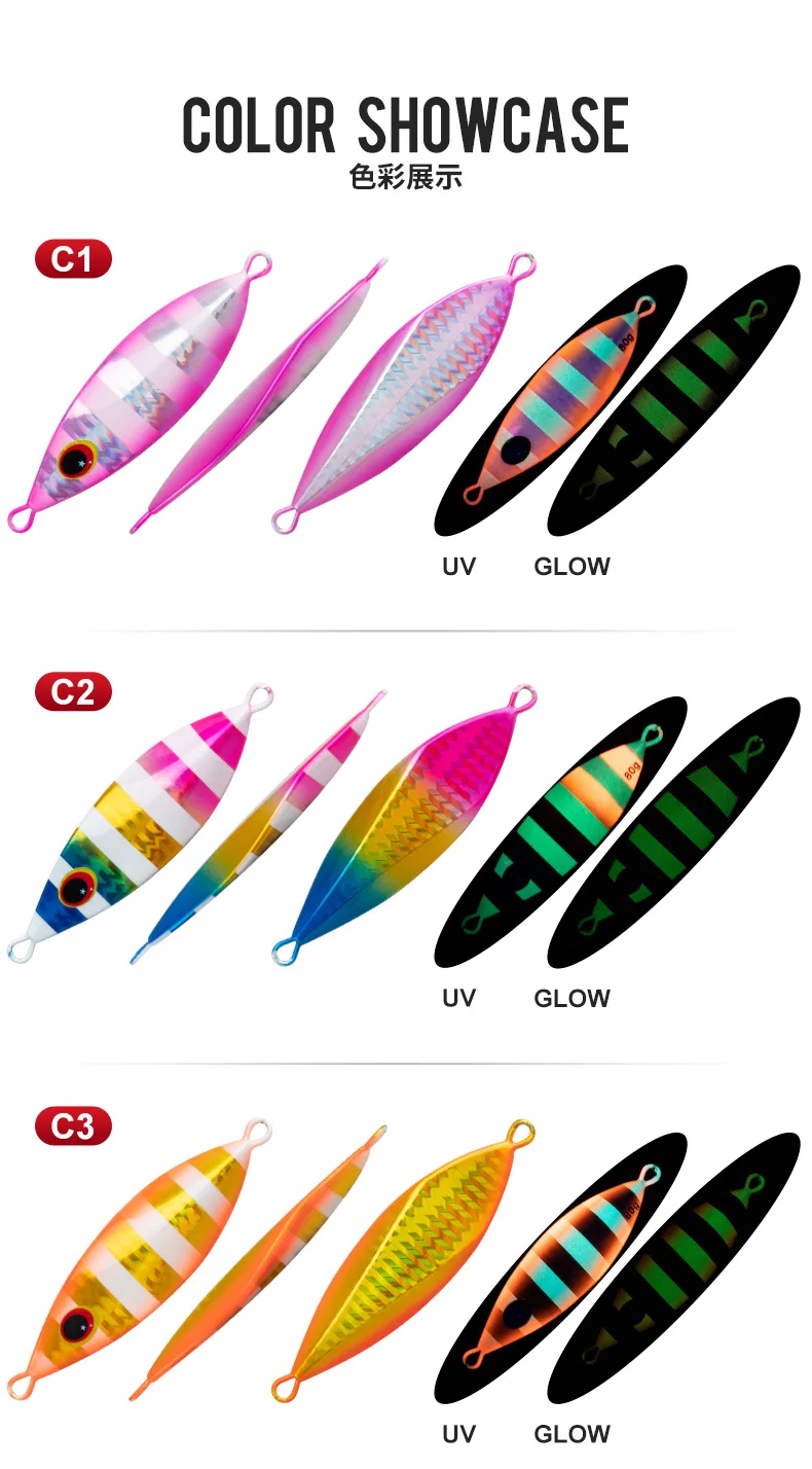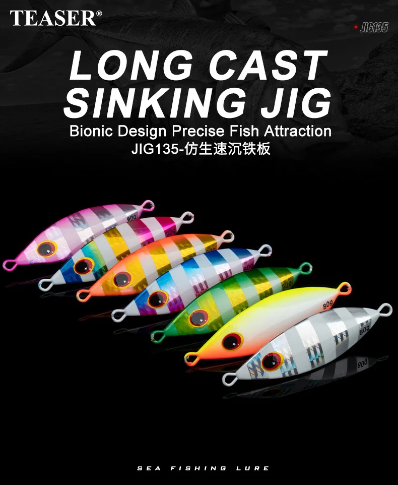 TEASER J135 40g 60g 80g 100g 150g cebo de pesca brillante jigging agua salada jigs de hundimiento lento señuelo de fundición larga cebos de plantilla de Metal duro