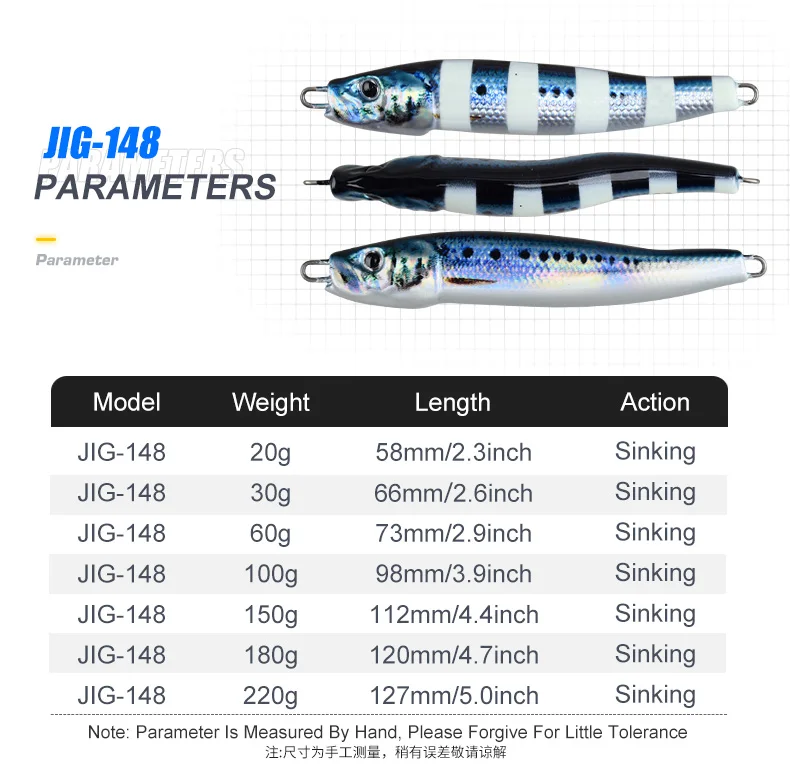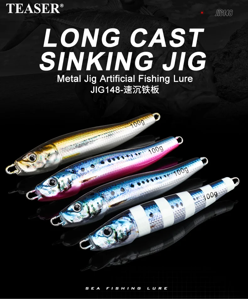TEASER J148 20g 30g 60g 100g Pequeño peso Metal Jigging Señuelo de pesca agua salada Jigs de fundición larga Señuelos UV Pesca S Forma Jig Bait
