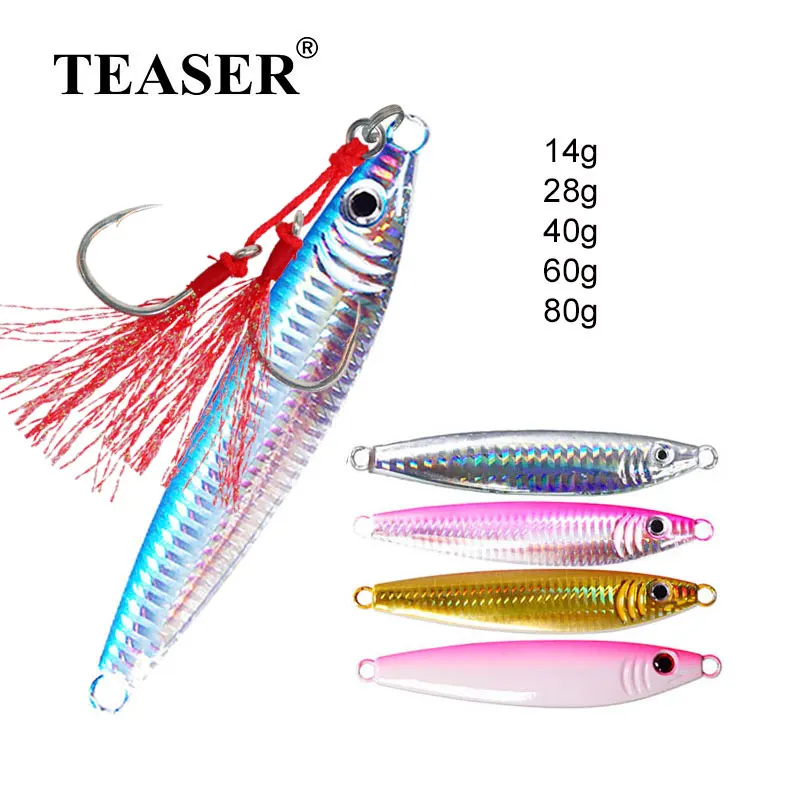 TEASER14g28g40g60g80g Micro Metal Jig Shore Drag Cast Jigging Cuchara Trolling Señuelo de pesca Artificial Trucha de agua salada Cebo Aparejos