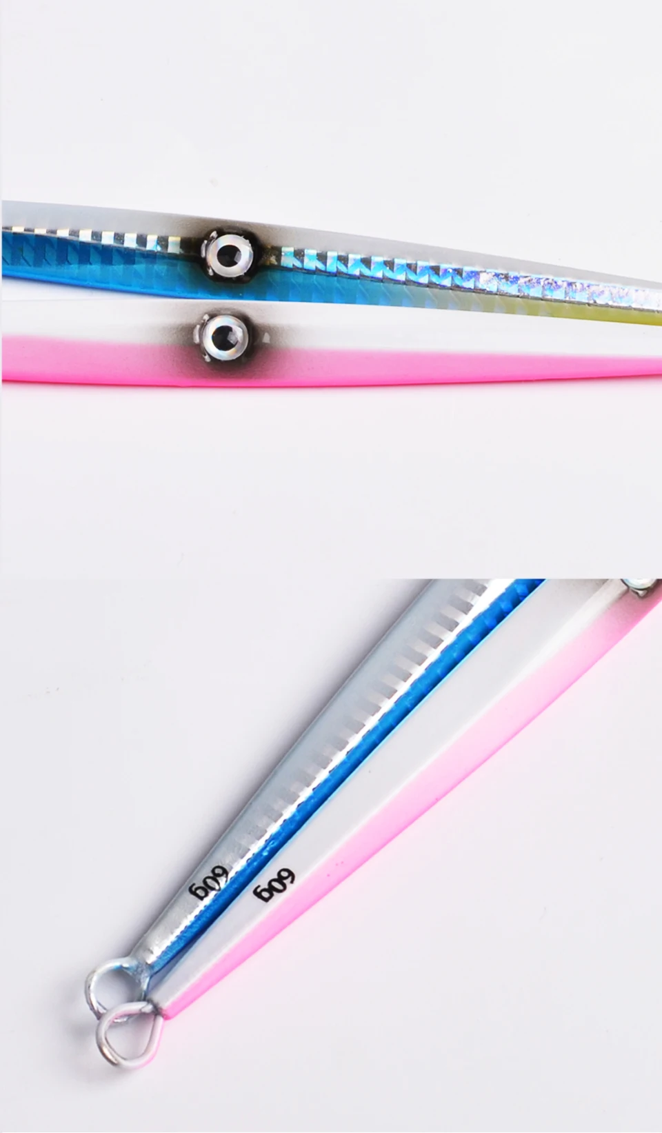 TEASER 60g 80g aguja de caída rápida hundimiento besugo lápiz cebos cuchara Artificial Metal Deepsea Jig señuelo de pesca con anzuelos fuertes