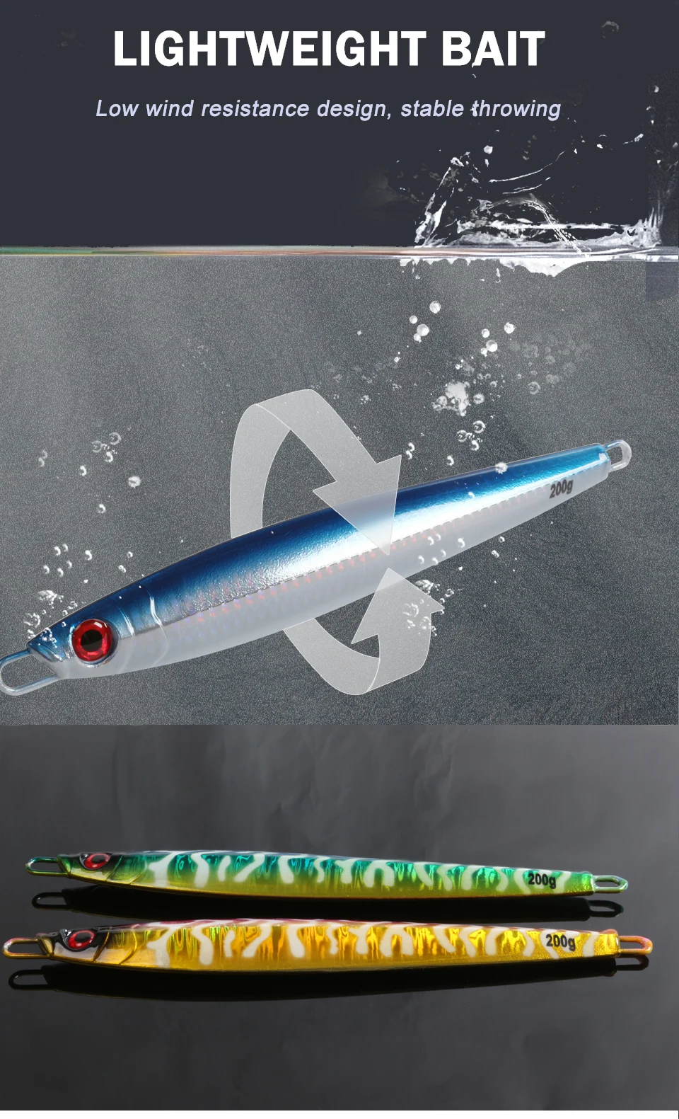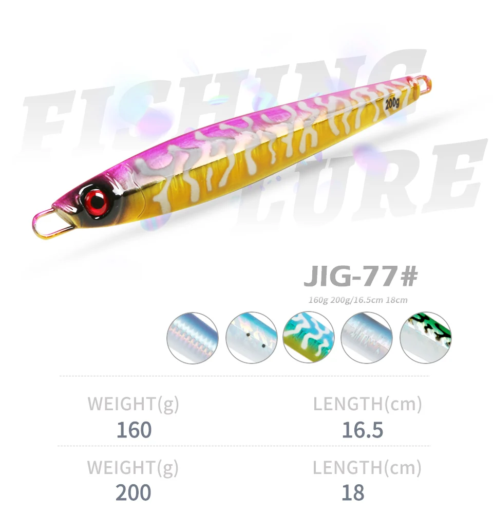 TEASER 160g 200g Japón láser de hundimiento lento Metal Jigging señuelo pesca con curricán cebo duro lubina Deepsea aparejos de pesca trucha cebo de buceo
