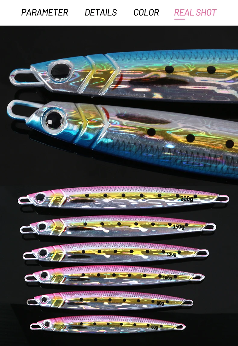 TEASER 100g 120g 150g 200g Majorcraft Jigpara Impresión 3D Láser brillante Láser largo fregadero rápido Jigging Vertical Señuelo de pesca de mar en agua salada