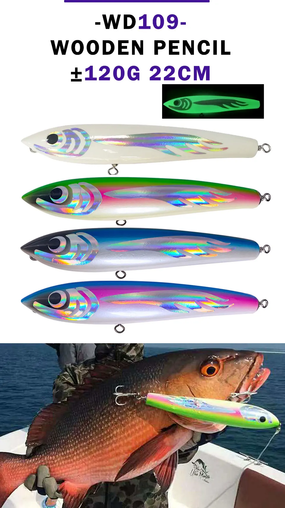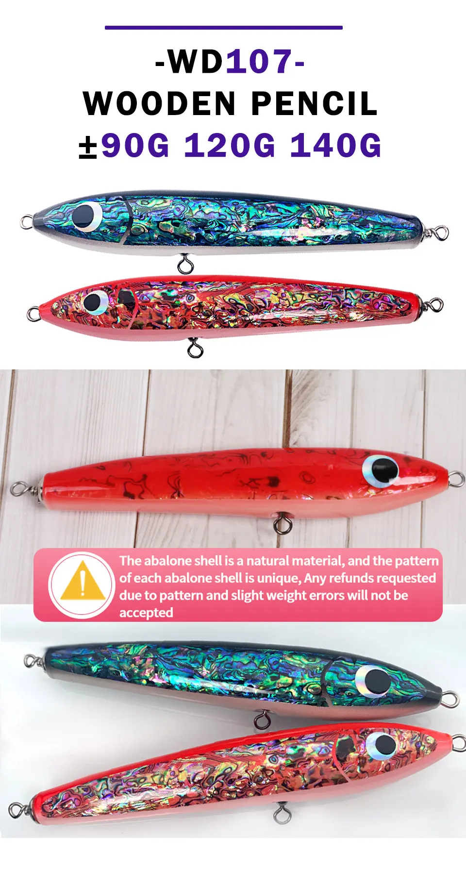 TEASER 90g 120g 140g Topwater señuelo de madera gran juego lápiz Popper cebo curricán Jigging mar pesca Stickbait para GT Kingfish atún