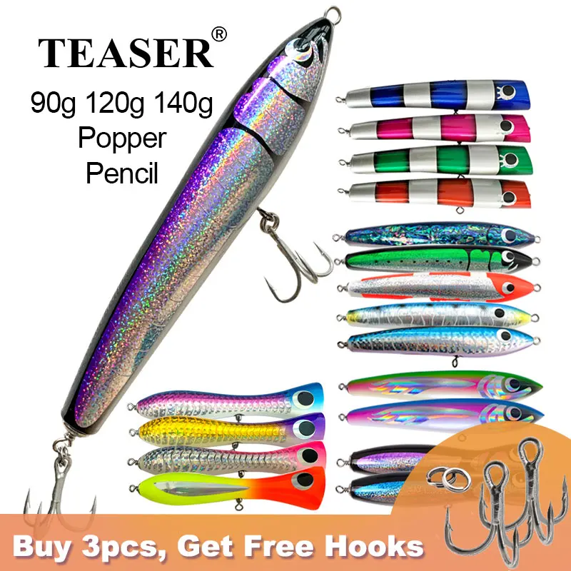 TEASER 90g 120g 140g Topwater señuelo de madera gran juego lápiz Popper cebo curricán Jigging mar pesca Stickbait para GT Kingfish atún