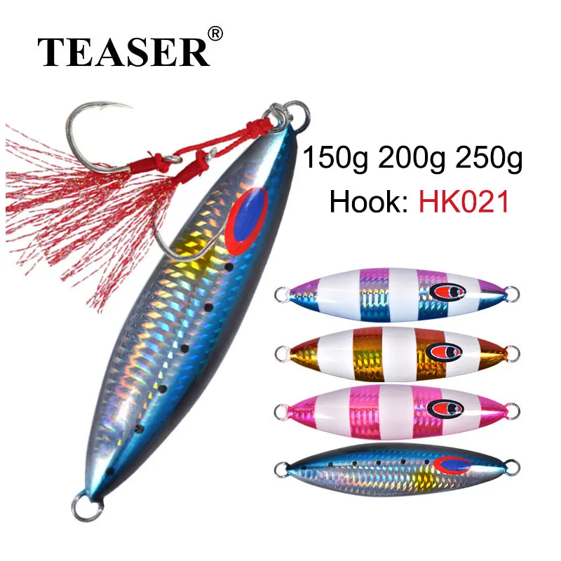 TEASER 150g 200g 250g hundimiento lento Jigging Spinner Shore Metal duro fundido Jig cuchara señuelo de pesca de mar cebo Artificial para curricán
