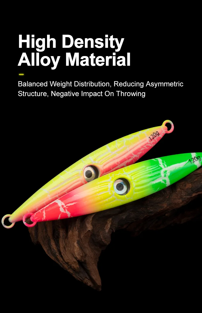TEASER J111 UV Glow Metal Jig señuelo de pesca Jigging Luz de pesca incorporada lámpara de ojo de pez Metal duro Jigbait 120g 150g 200g 250g