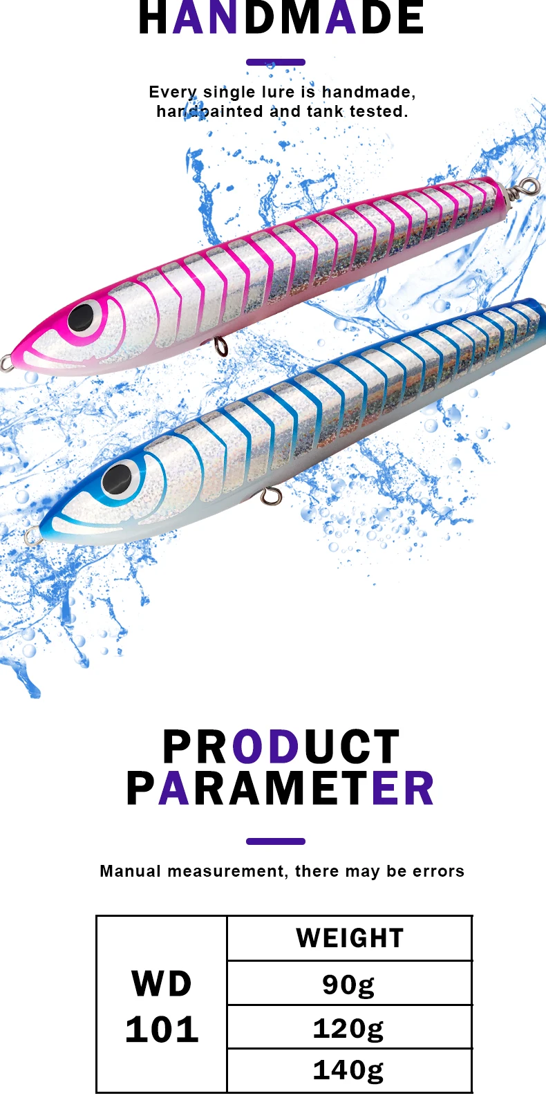 TEASER 90g120g140g Swim Stickbait TopWater Lure Fishing Wooden GT Tuna Trolling Pencil Artificial Floating Long Casting Wobblers